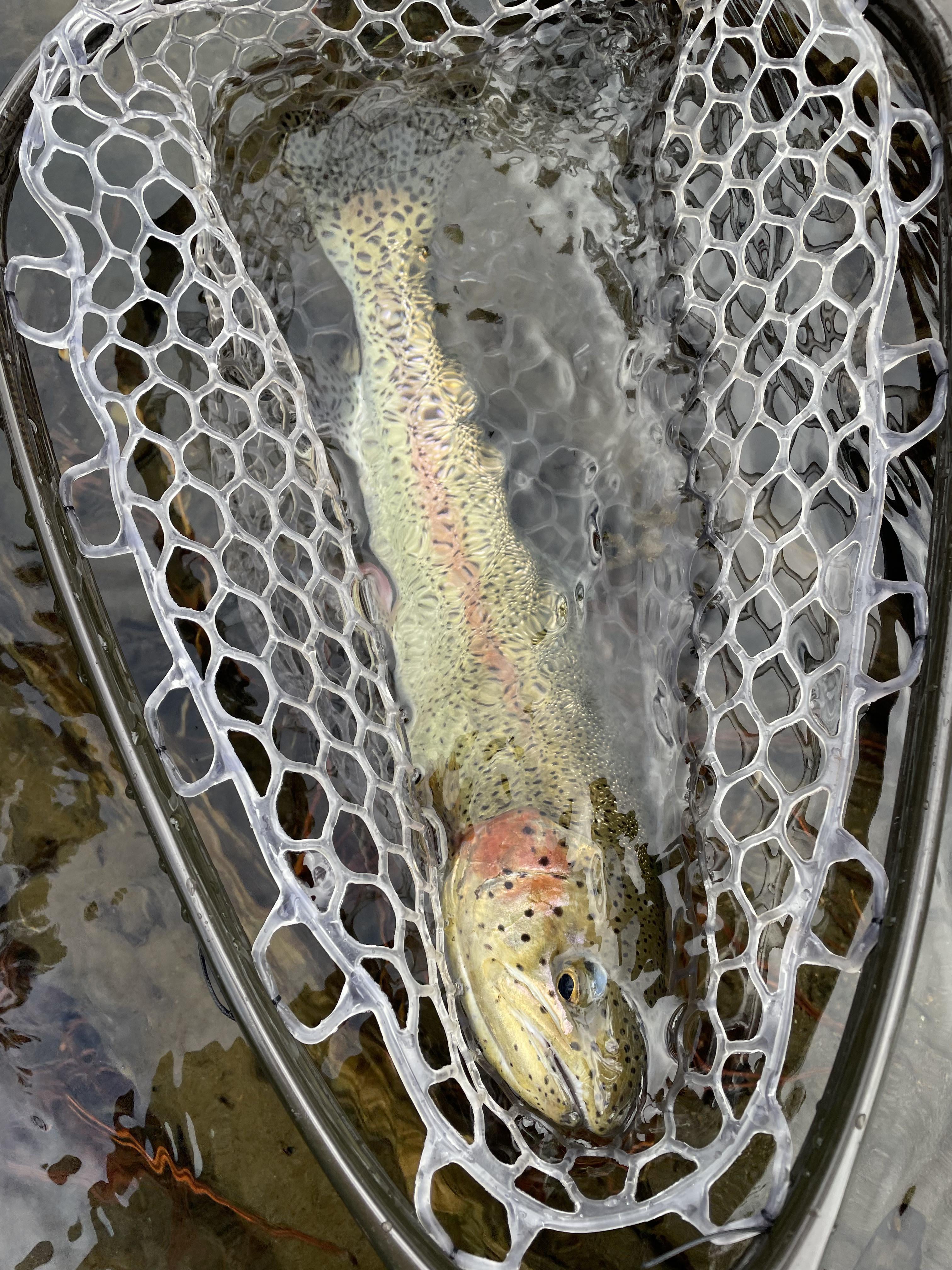 Snow and cold temperatures make some slick conditions. Fell about three times and still landed this beauty.