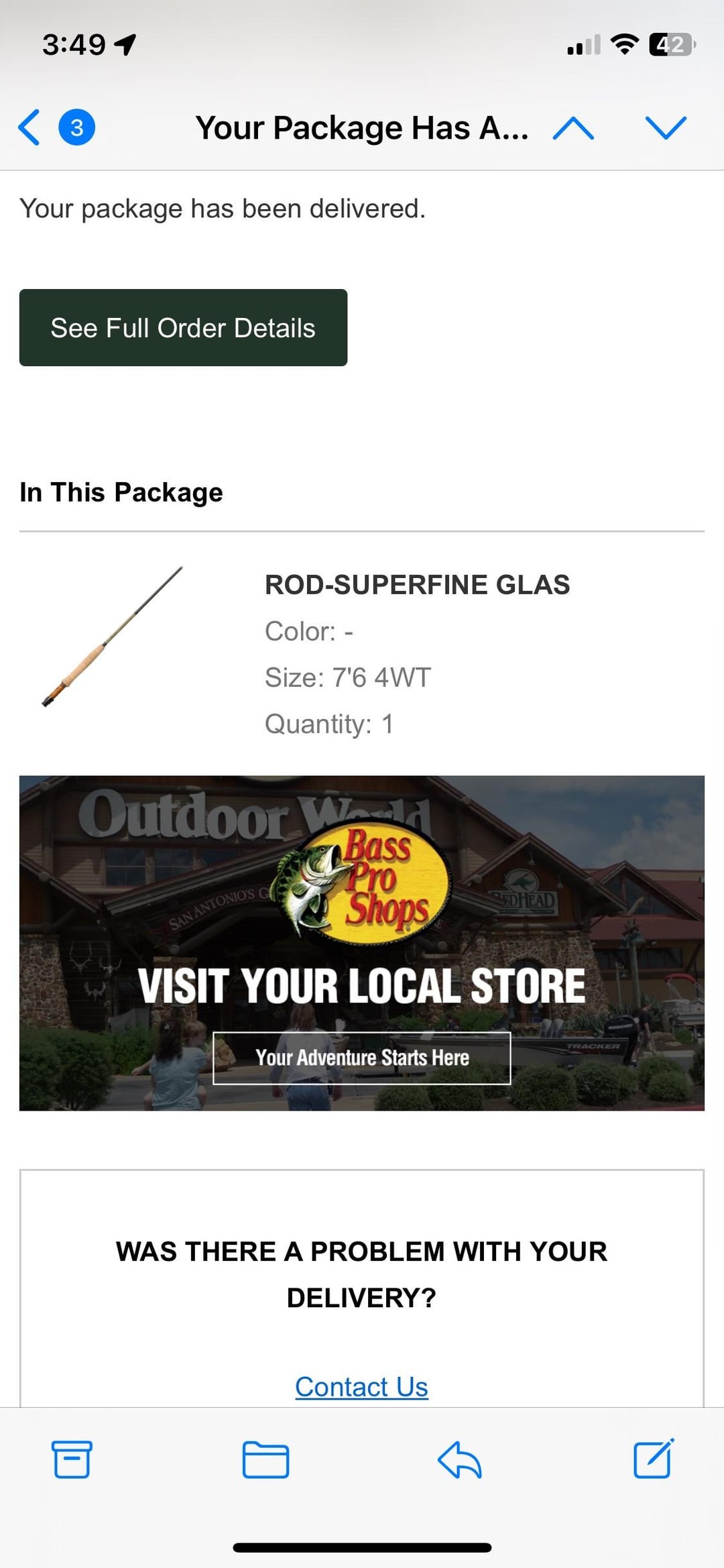 Received wrong size rod. Without rod tube. Package taped together. Half assembled. With a bit of bubble wrap. In a comically large box.