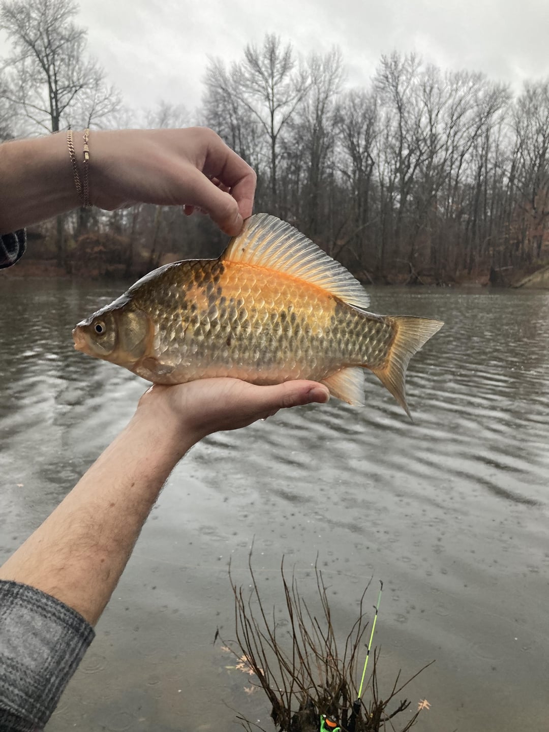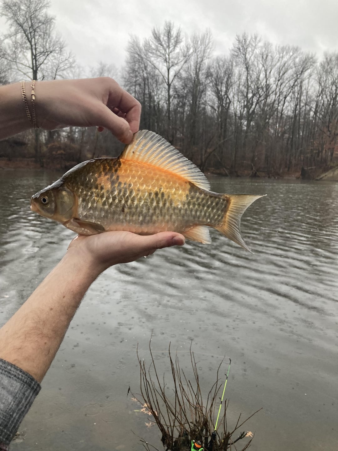 Body of water we fish is loaded with common carp. After pulling probably 20 commons over the last month we got this. Thought this was a goldfish at first bc of the bright orange patching but upon further investigation I believe it’s a crucian carp