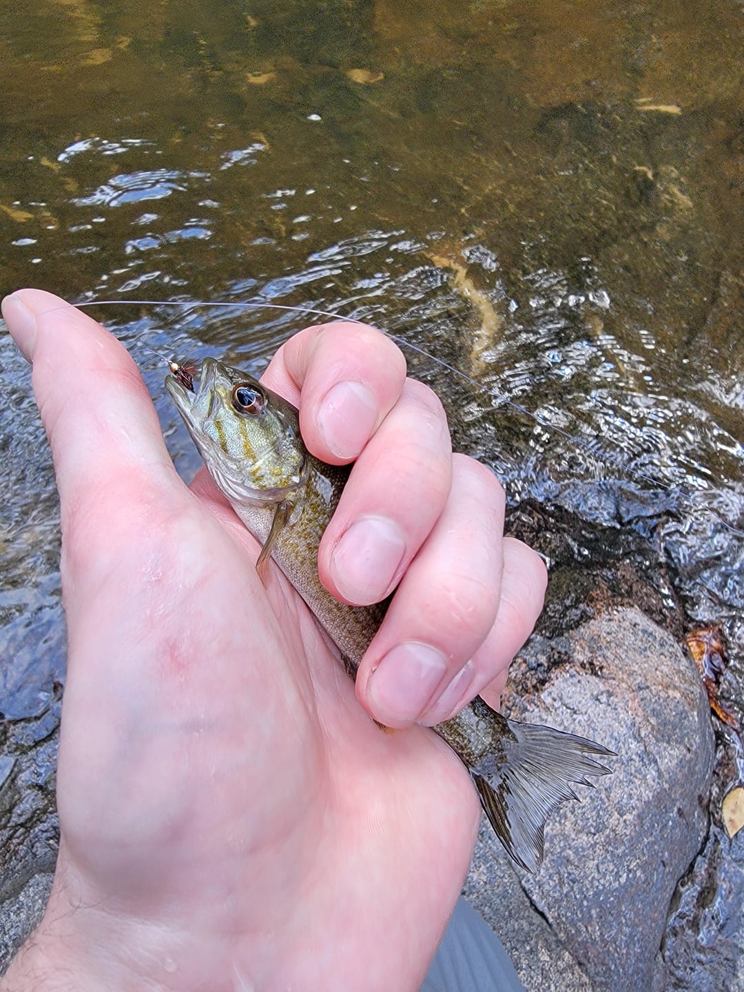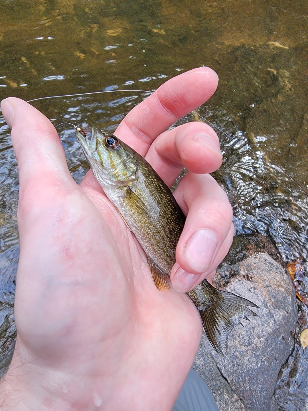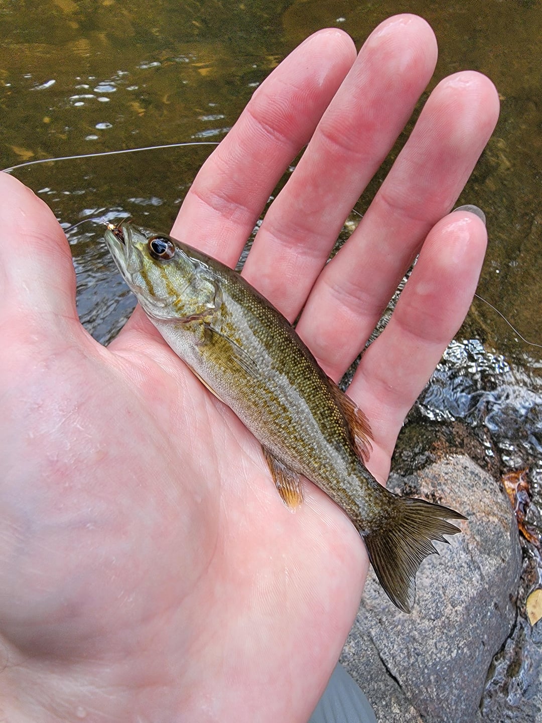 Black Bass(?), 5in to 6in, Pickle Creek MO, Caught on Zug Bug