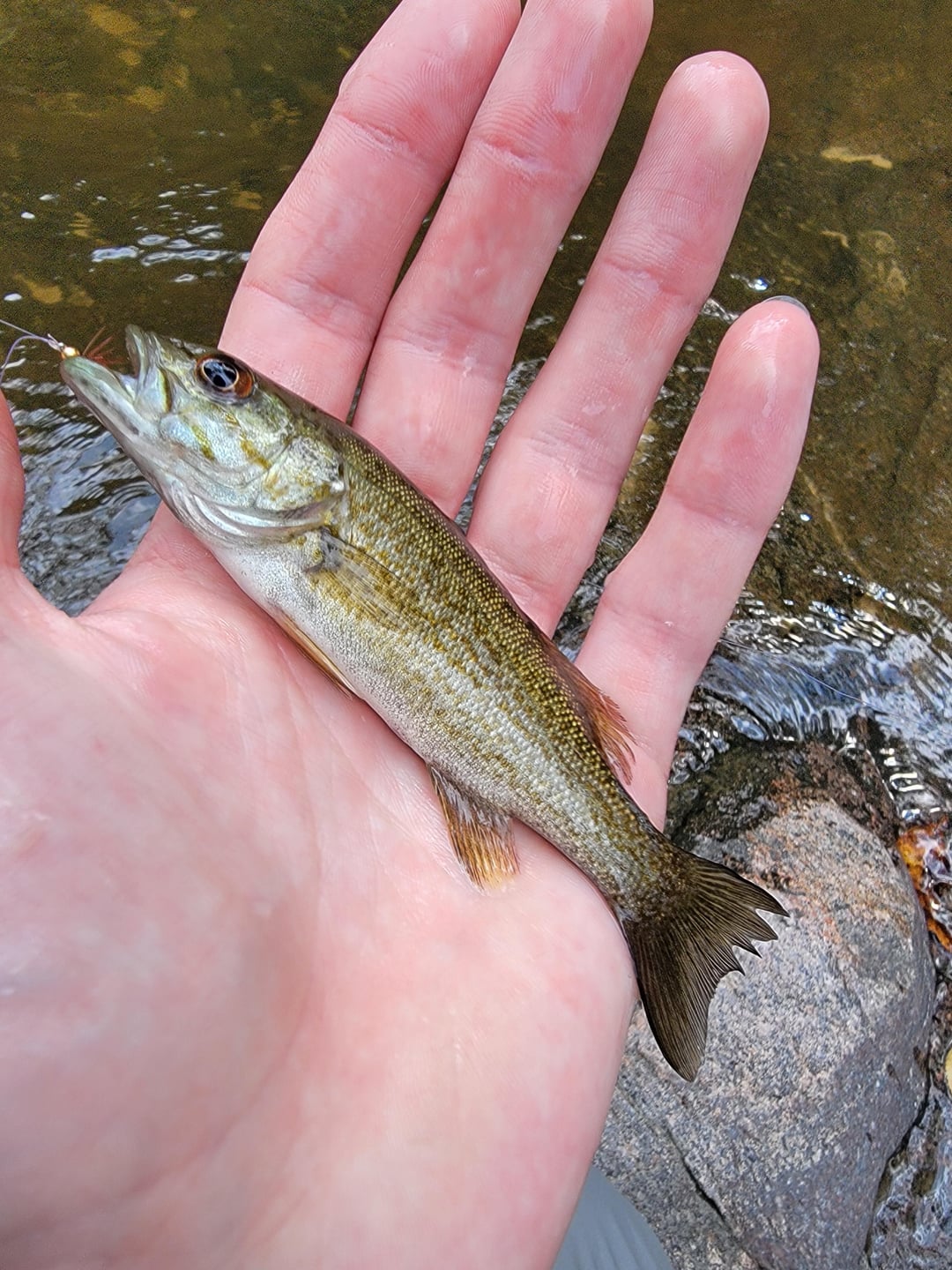 I caught another Bass 10 minutes before this one that's technically too big for here. Including Panfish I caught at least 5 different species on this hike, and all with beautiful colors.