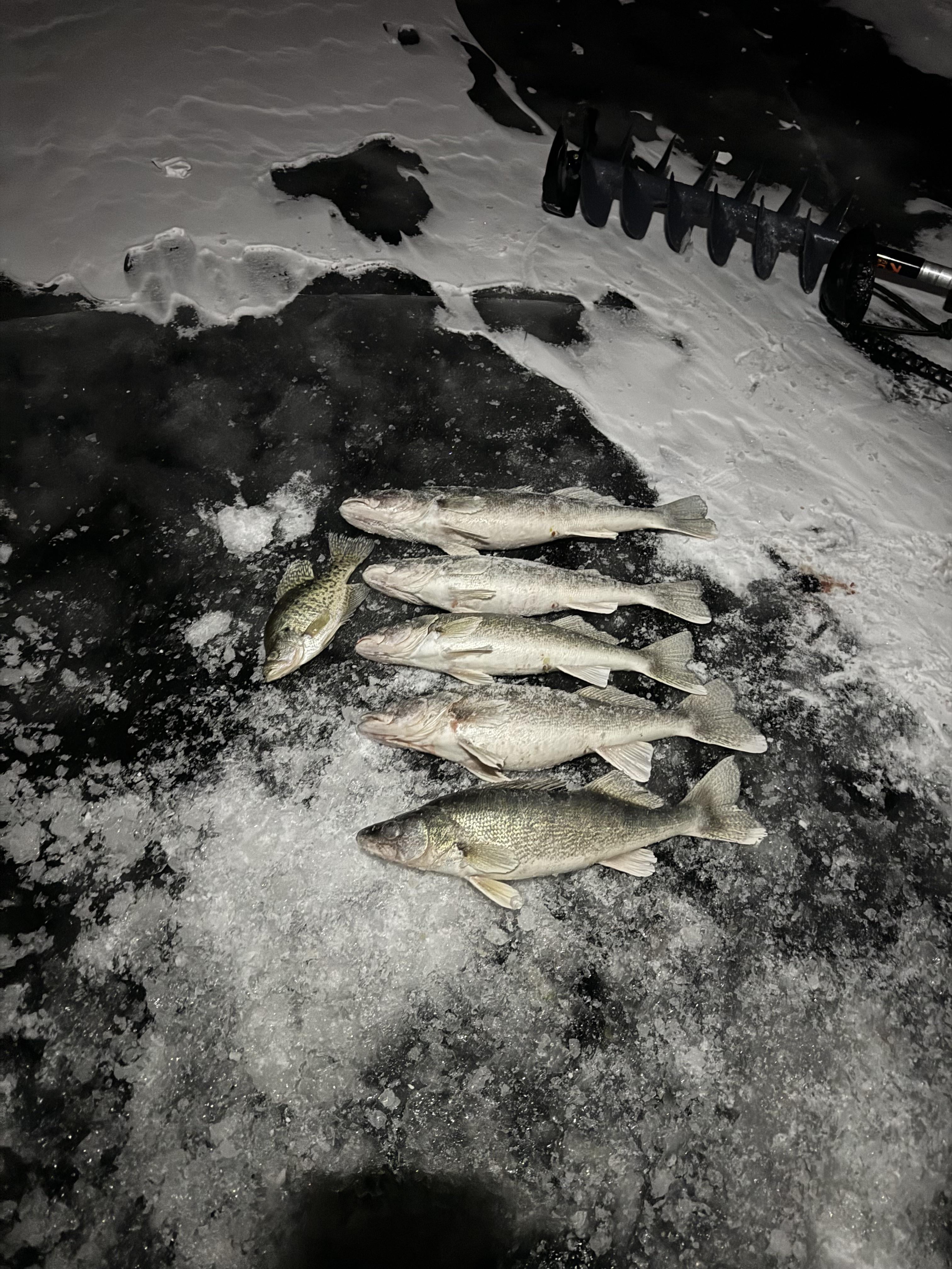 1 short of a 2 man limit. Which we lost at the hole. 18.25 shortest, 22” longest. Plus a bonus crappie. Yes I know these are all spawning class fish. But size limit is 18” on my local lake. So I limit my self to 22” max. I know exactly where I’m putting my ice castle next week.