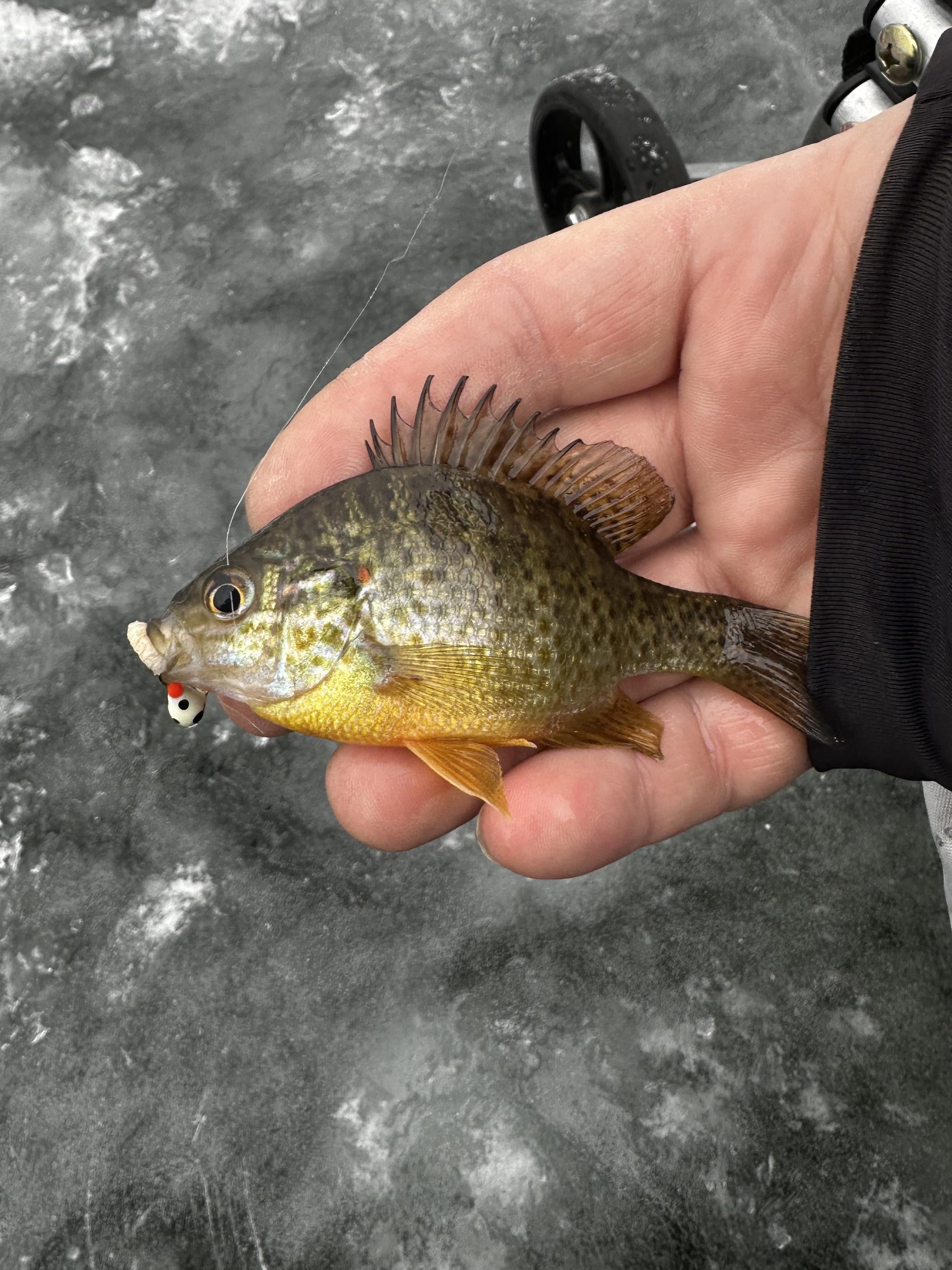 First ice catch of the season on the palm rod was this little guy. Red ear perhaps? Posted by mobilecabinworks