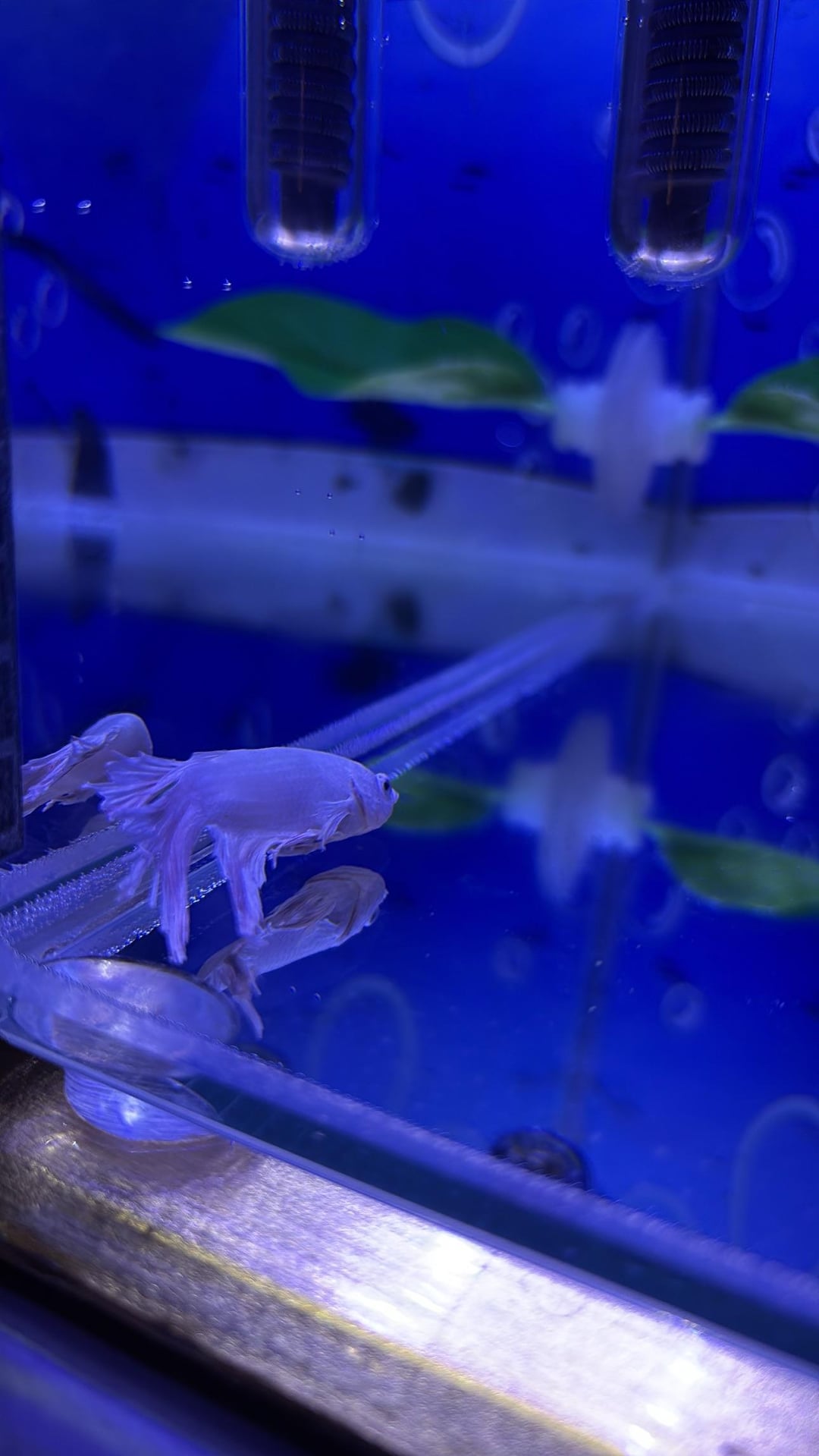 That betta looks to have fin rot. It can sometimes be a sign of poor water quality or stress. I would definitely look into it and test your water conditions.