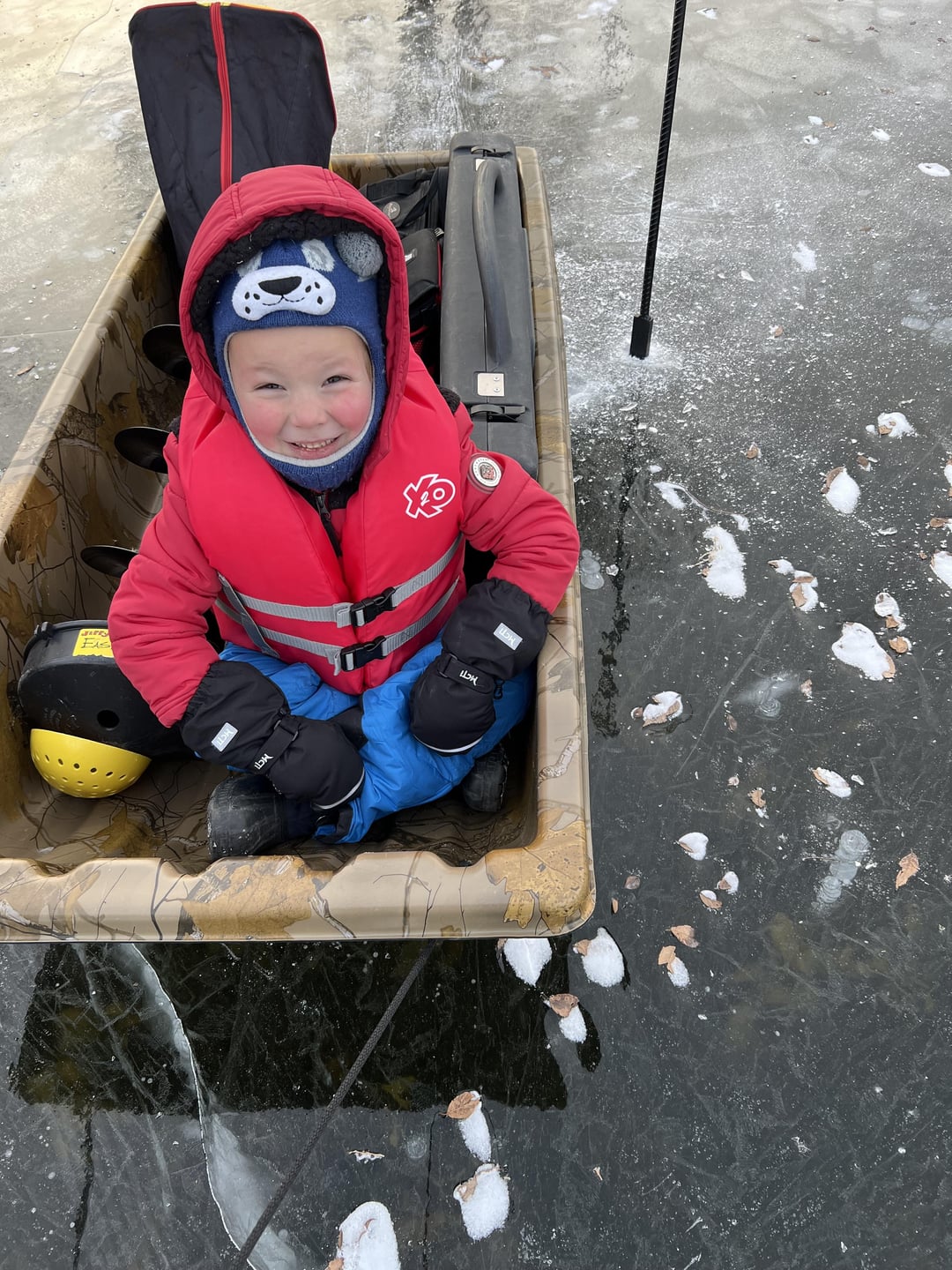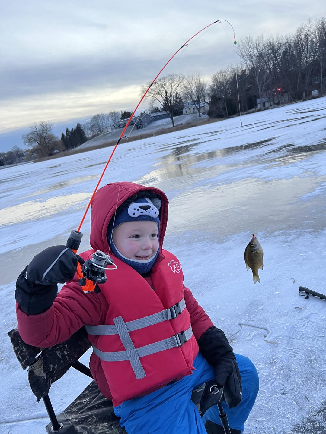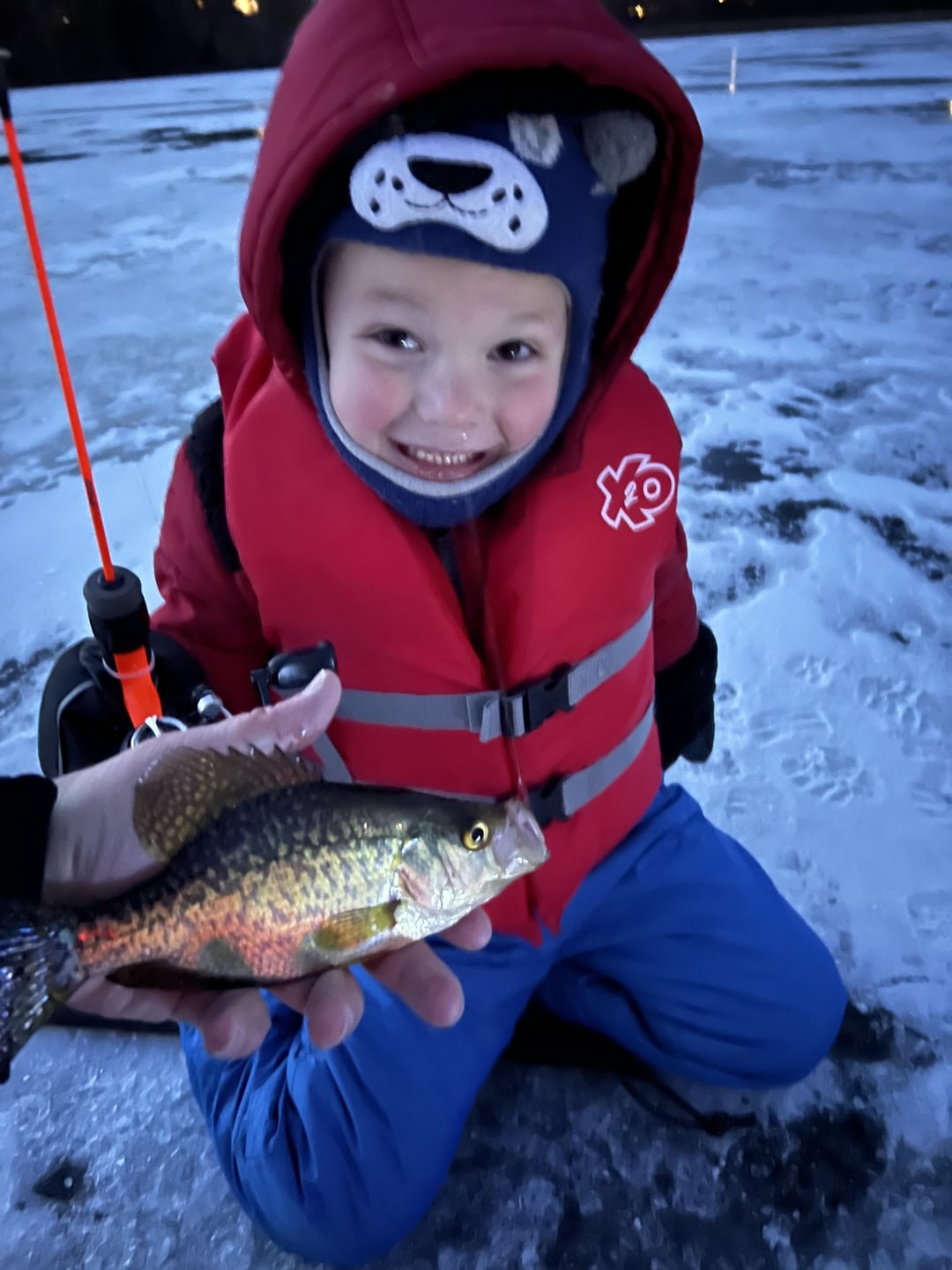 The boy was itching to get out on the ice, so we finally did for a quick hour, which was great. We have a small nearby lake that almost guarantees panfish action – I refreshed him on technique and he was able to get the crappie to chase and bite, and he set the hook and brought it topside. Not bad for a 4 year old! Looking forward to getting out more soon.