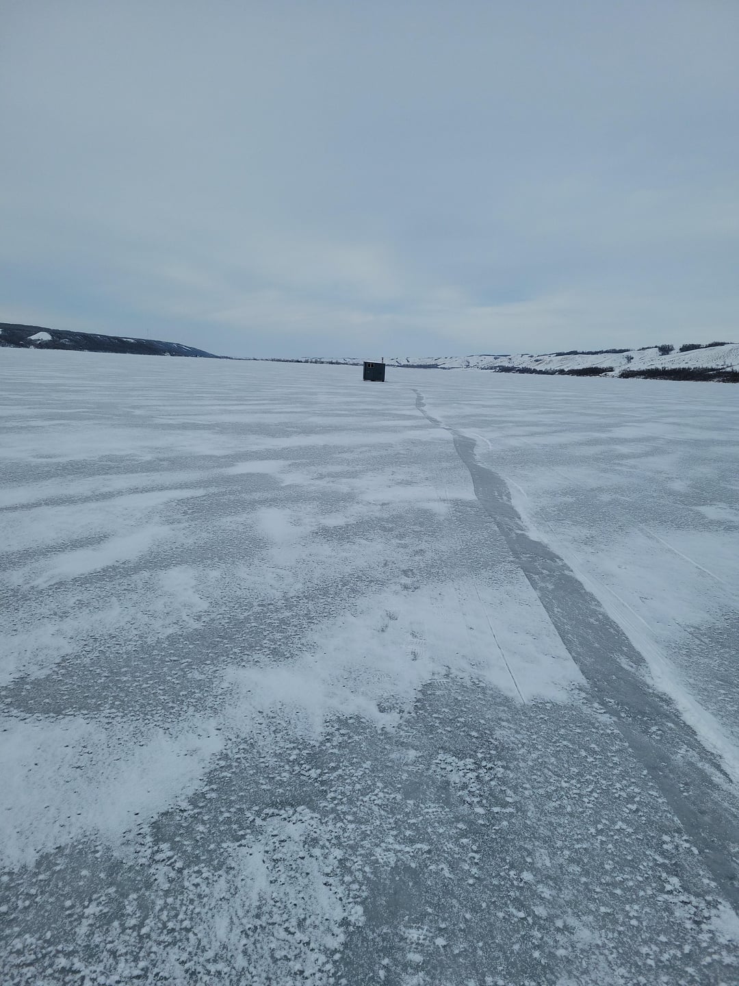 First time out. Took an hour to clear the snow and actually get the shack on to the lake.