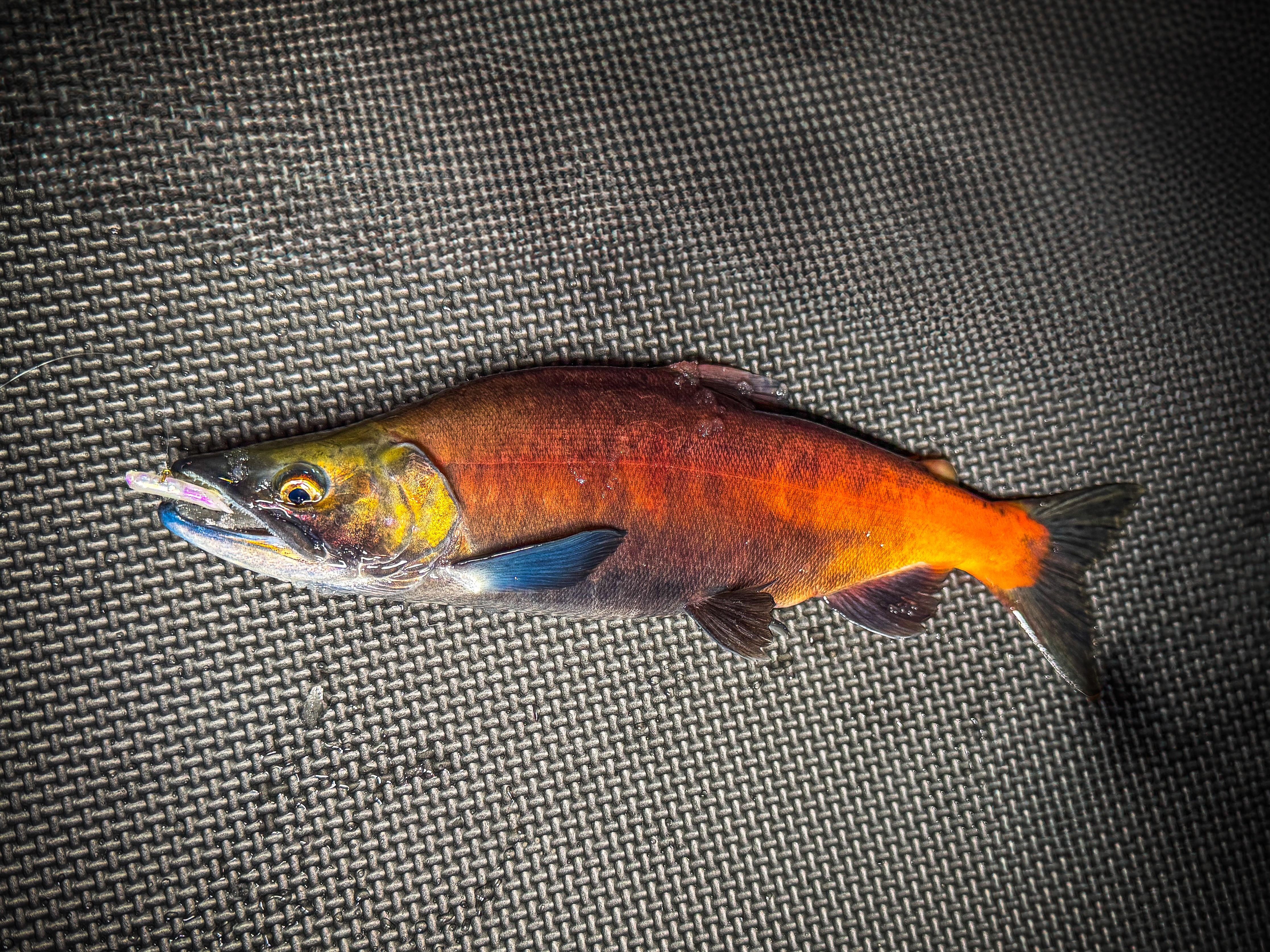 First Kokanee salmon I’ve ever caught and pulled him up through the ice 🤙🏻