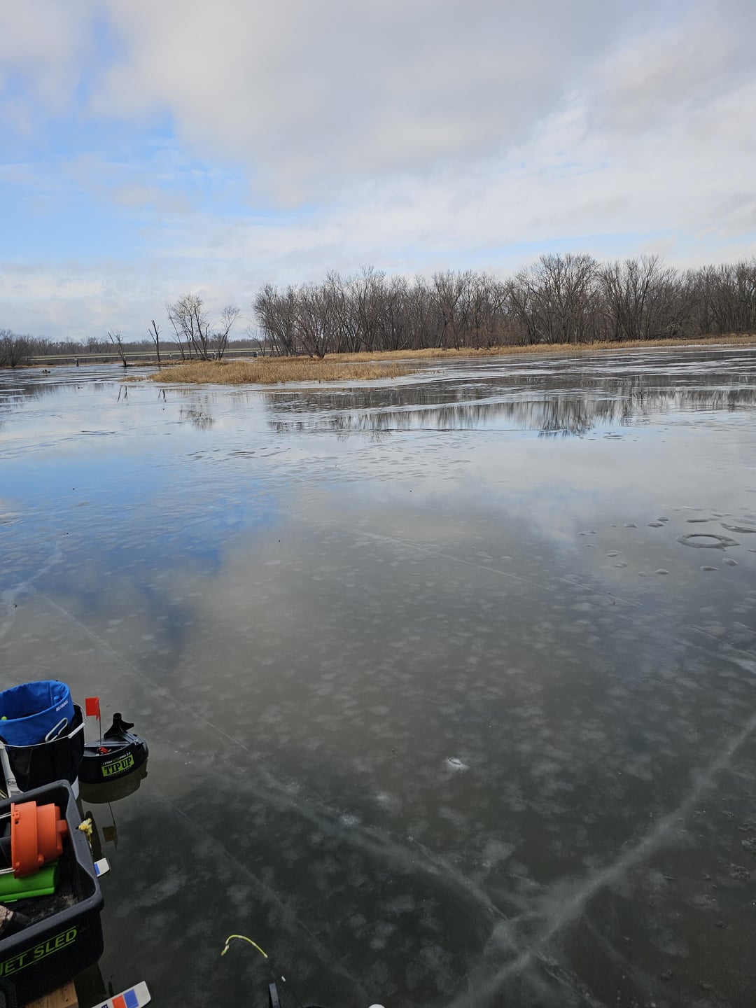 Cousins and I found some good gills and perch between Wabasha & Alma. Was a little wet, but the ice was decent.
