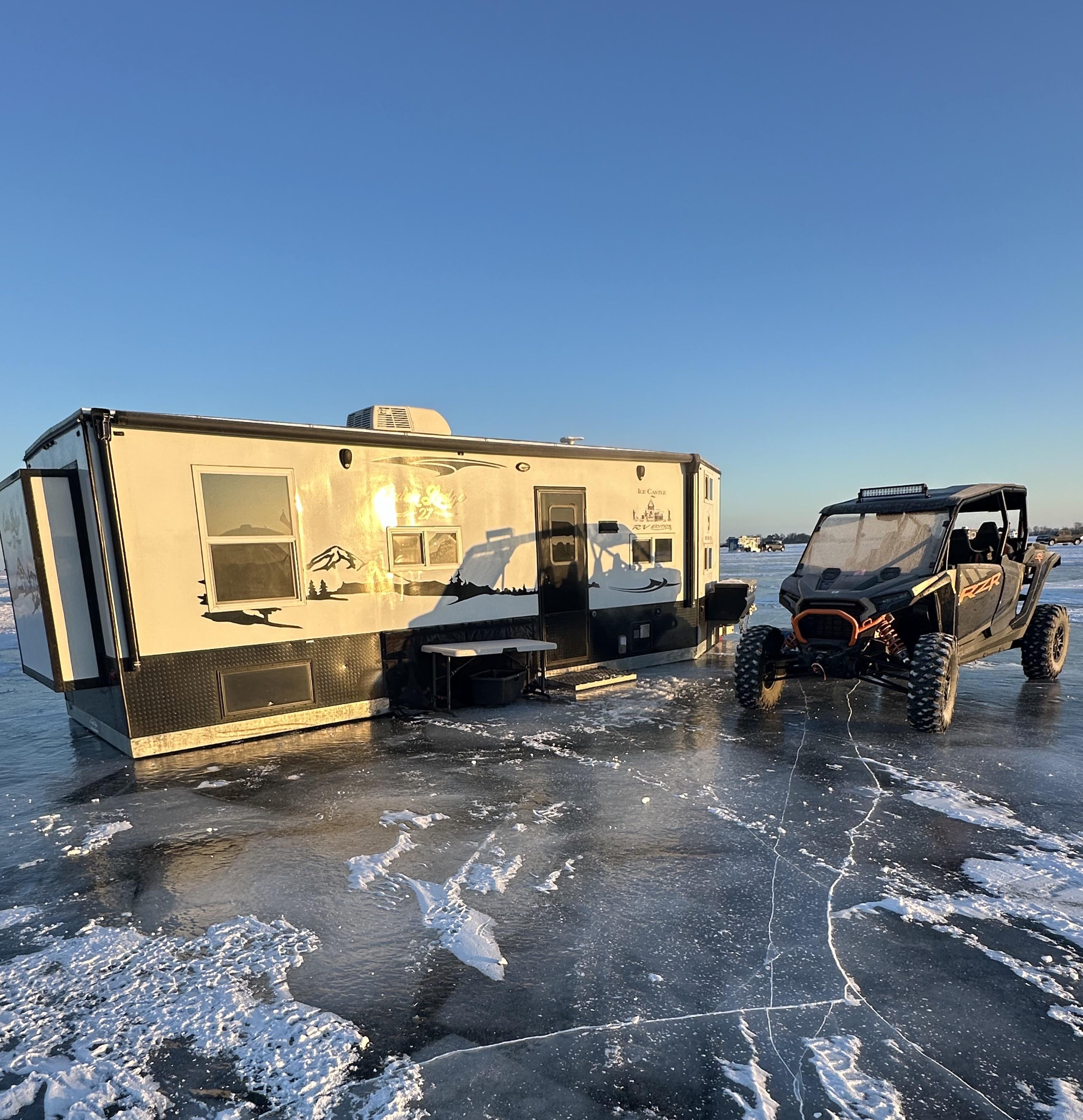 Got the big house out for the season. Keep it on a good night bite and use the SxS and portable to get out chasing day time bites on lake big enough to spend a whole season breaking down! It’s been since the first weekend of Feb ‘24 since it’s been on ice!