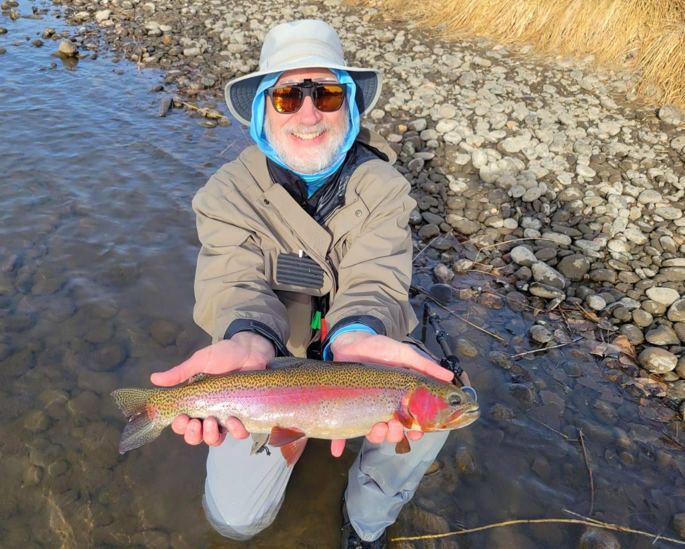 Caught on small midge pattern. Glad to have a guide to land it!