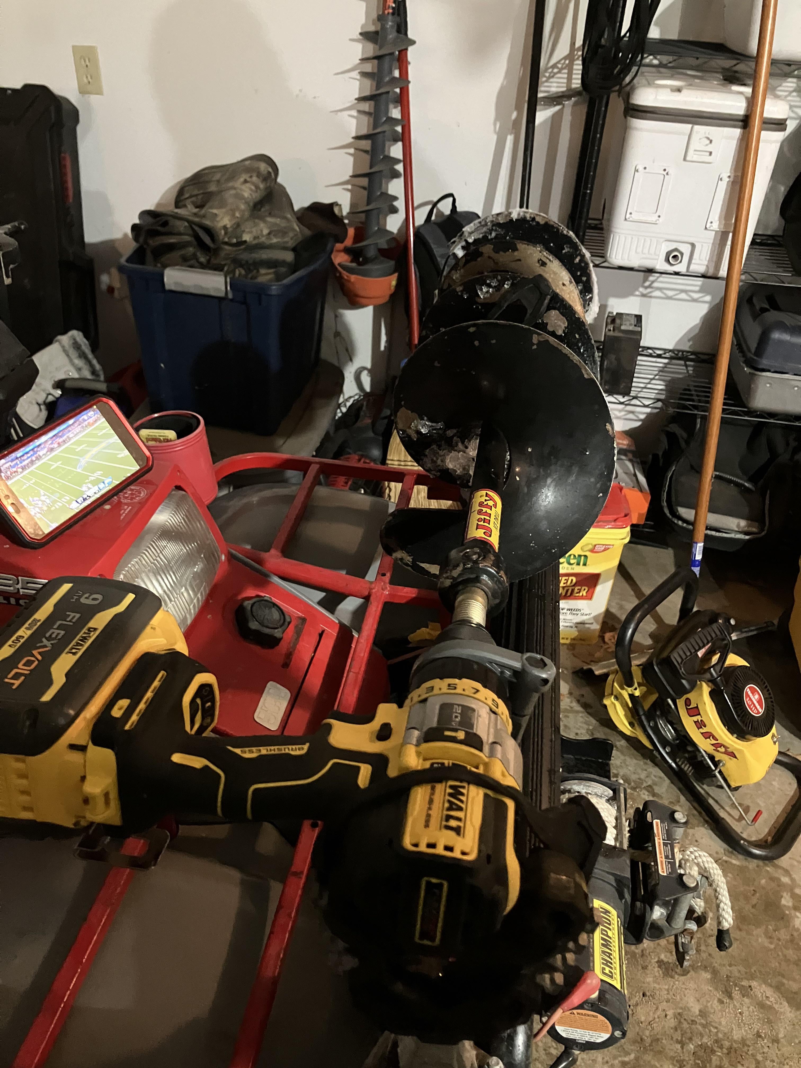 A ten inch Jiffy STX chipper, chucked up to the Dewalt 999.