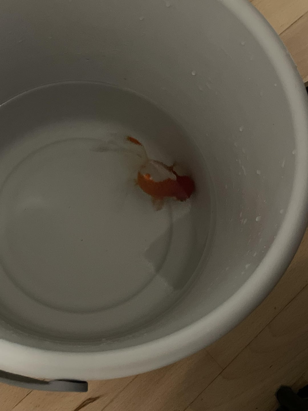 I moved it to a different tank a little over a week ago and tried feeding it peas, because I thought it might be constipated. I couldn’t get it to eat them though.