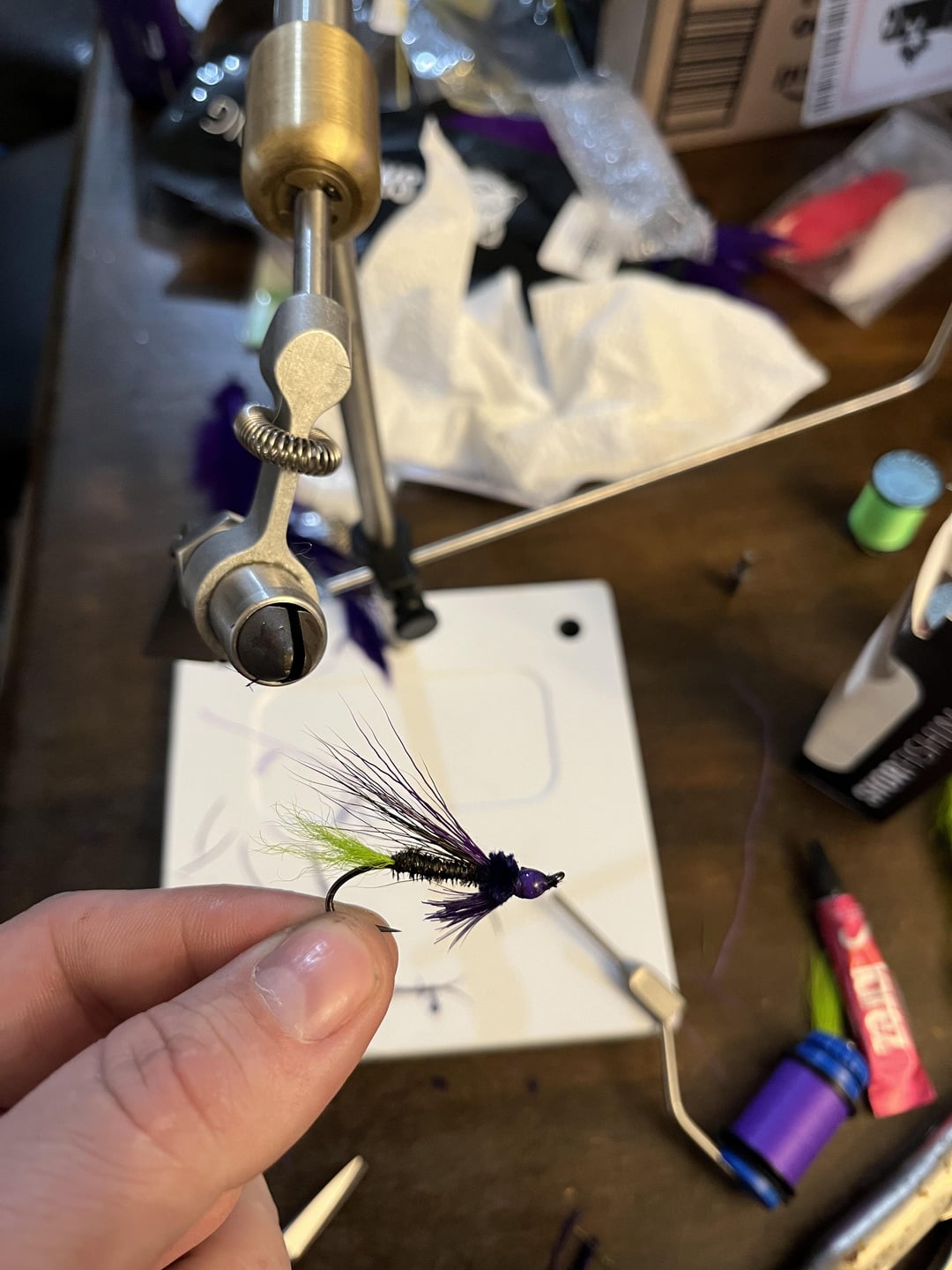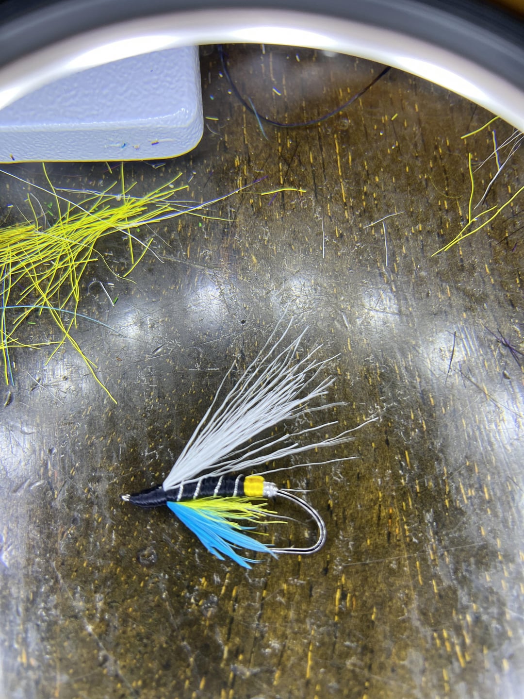 Atl Salmon Fly, just made up. The second one is a white wing blue charm with some yellow in the throat. this one was about the 14th i tied. So much to learn Posted by Thisapparatus