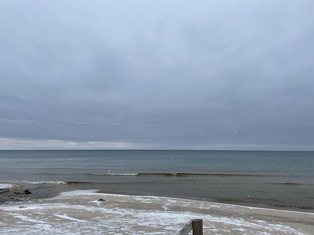 18 degree F, snow showers, and icy sand. Coho salmon eggs in yellow netting