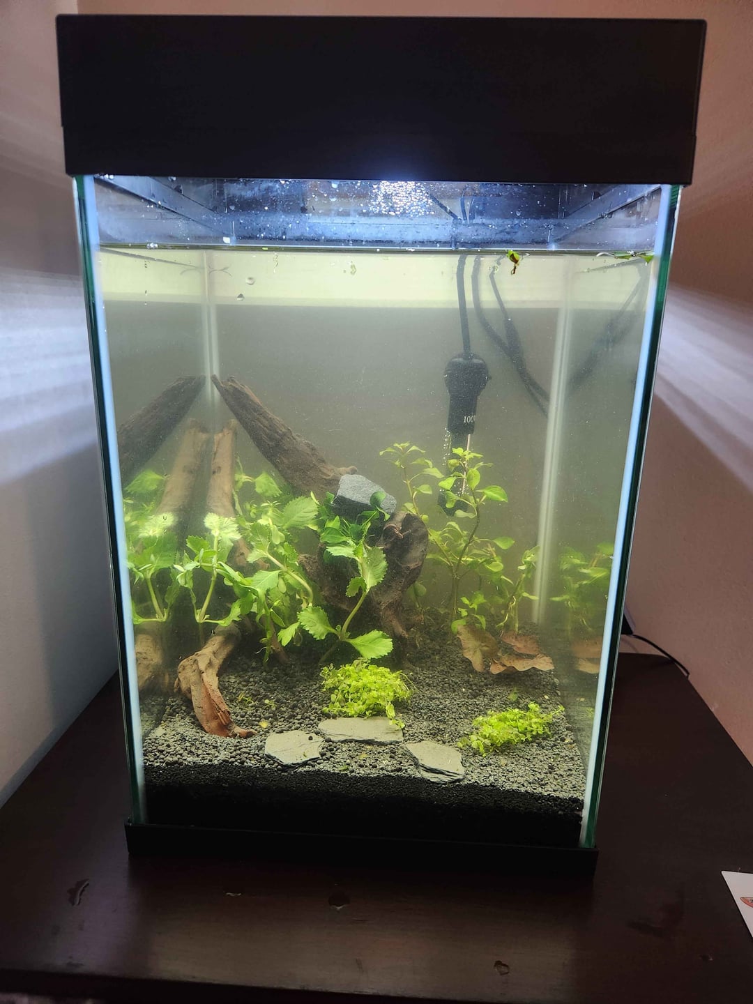 its intended only for shrimp and some snails, theres some bladder snails in there that came with the plants (which ive been keeping the eggs under control but the lady needs to close her shell i swear)