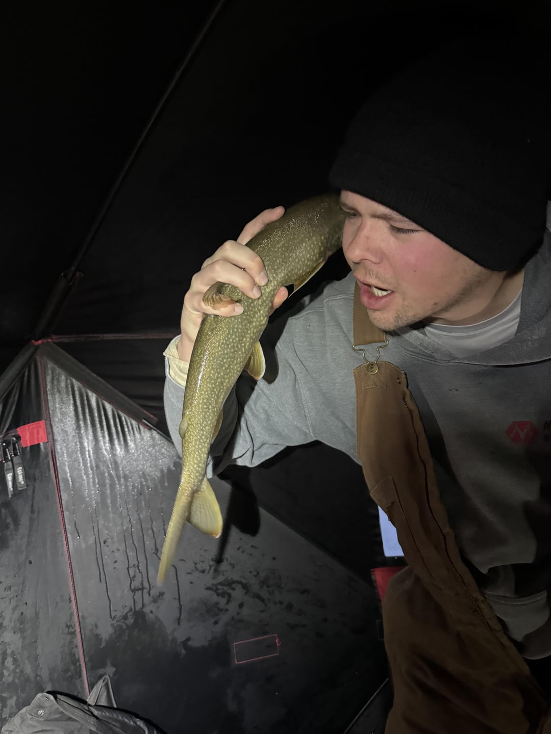 Have never caught lake trout before, decided to take a trip a couple hours north with my buddy to get after them thru the ice. Only 3 acres of the whole lake were frozen- we found em in 12 feet of water on rocks/boulders.