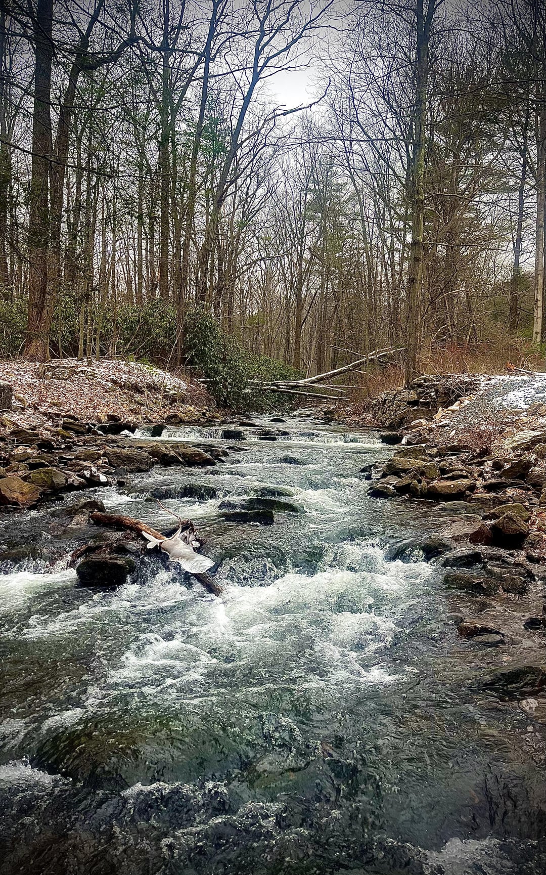 With everything totally wrapped and ready for Christmas tomorrow, I was able to get to the stream for a few hours. The fishing was good with around a dozen fish to hand, nothing big but plenty of lookers. The setting was better. Little dusting of snow, some cool ice formations, and a pleasant temperature. Unable to deliver gifts to the fish that bring us so much joy, I decided to do the next best thing and haul out all the garbage I could in a bag that I happened to find on another local stream during a different day. I try my best to take some trash out during every outing, and figured the holiday was a good opportunity to promote it, in hopes that others will do the same. We owe it to the fish and to the landscapes that bring us such pleasure all year round.