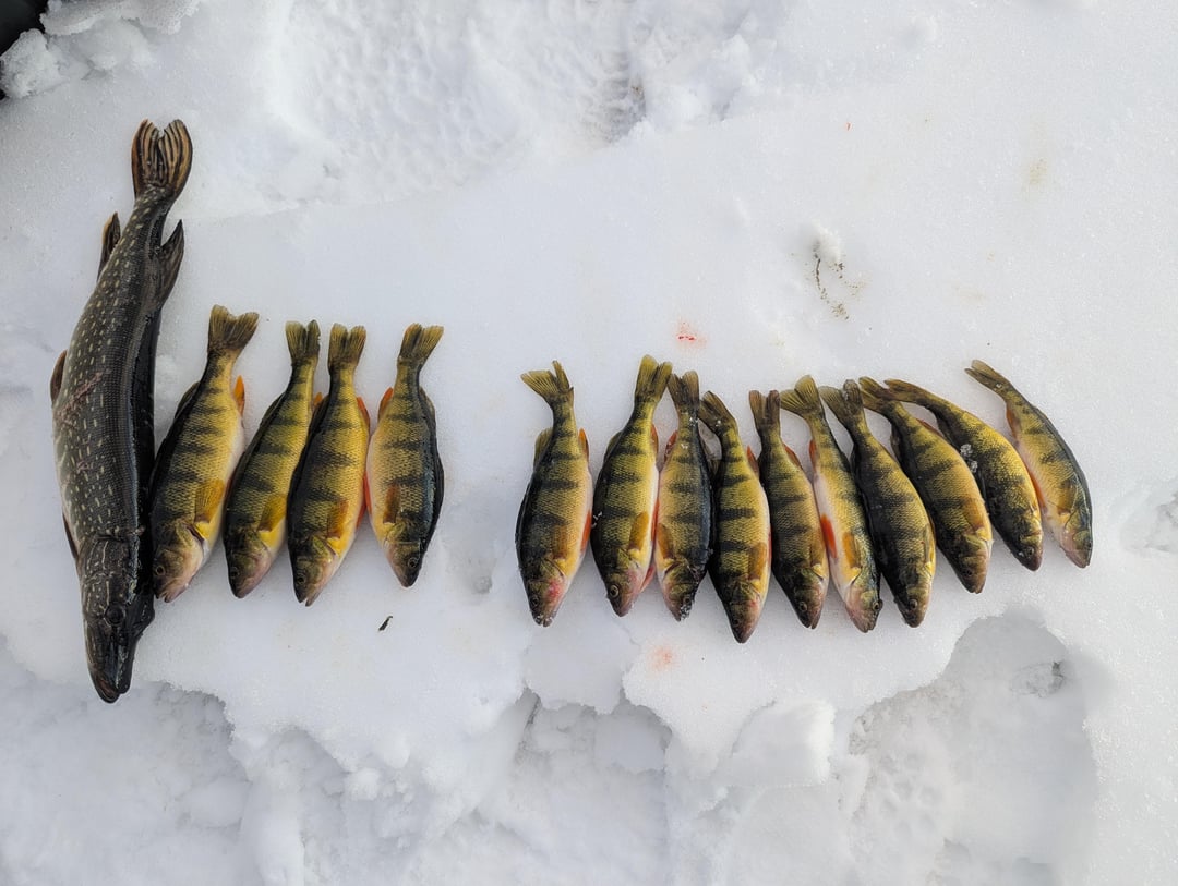 Christmas fun! Wife gets the big perch and my son catches his personal best pike!