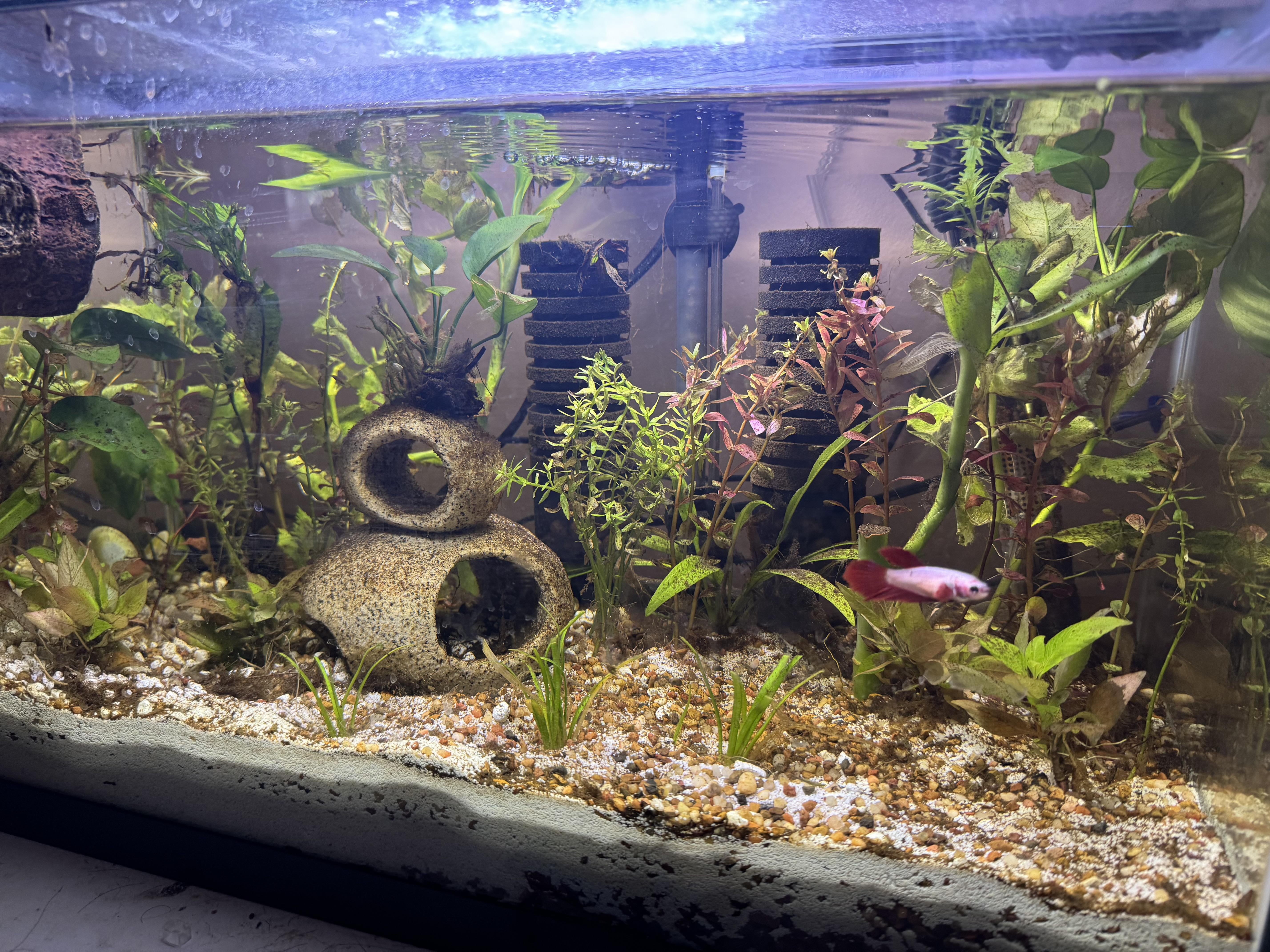 so this is just a basic question. my sister and i were gifted 3 bettas (yes. 3. all male.) and i currently have 2 established tanks and she has 1, all of which are bettas. we already went out and got a 10 gallon tank for each betta but my question is how long does it typically take to establish a cycle using old filter media? i have the hygger sponge filters and was thinking about just removing one sponge from each established tank and adding them to each new tank. fish-in cycles terrify me but my local petco is actually disgusting so i dont have it in me to return the fish. please help lol ive added a pic of celia’s tank for tax purposes (aquascaping is NOT my thing so pls be kind.)