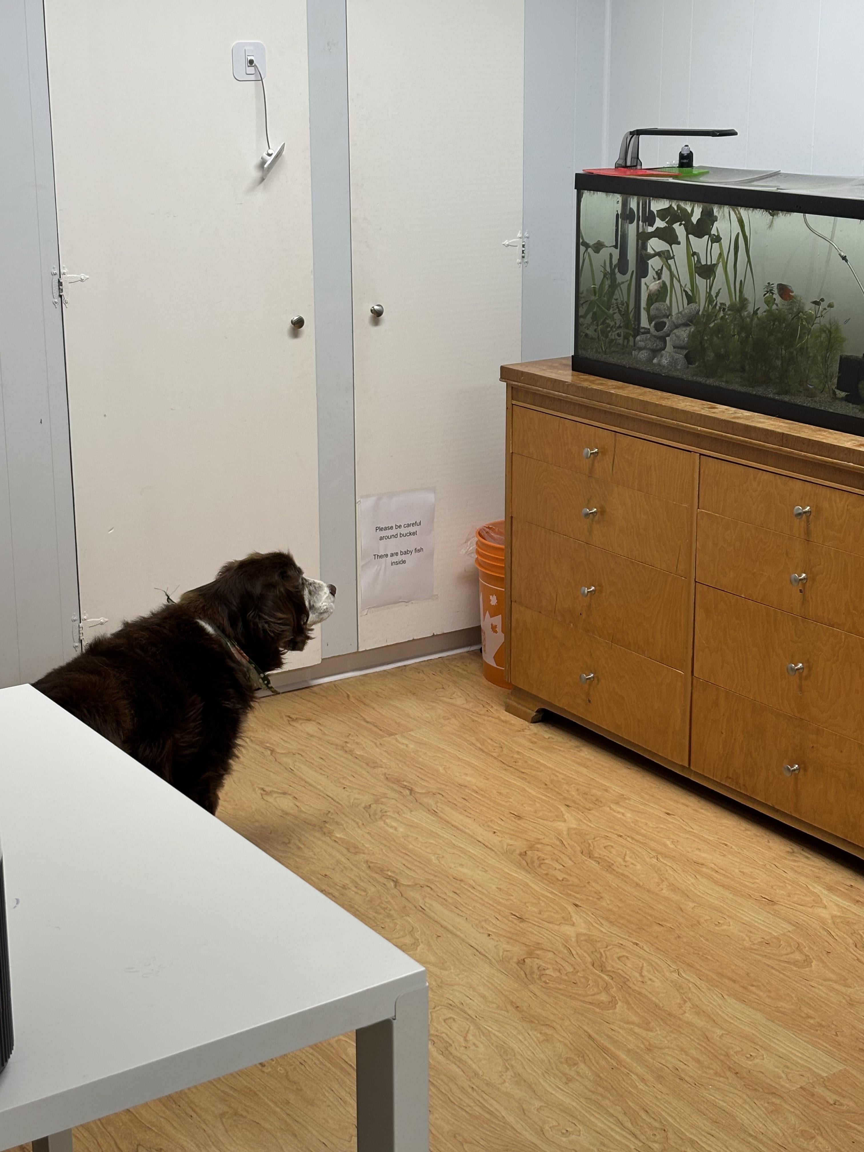 I showed my dog that there were fish in the big glass box he walked by every day. He was absolutely mesmerized Posted by Low-Baseball-7978