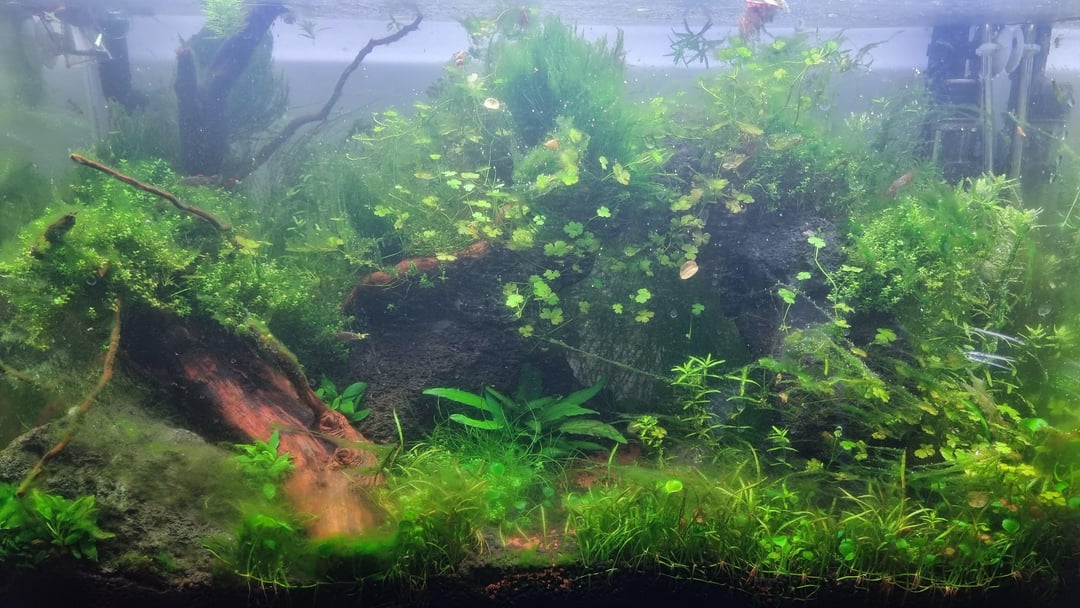I perform water changes (1/3) twice a week with slightly remineralized RO water, and I try to remove as much algae as possible every two days, but they keep coming back in larger quantities. For now, I’m not adding any plant nutrients to the water, fearing it might exacerbate the algae problem.