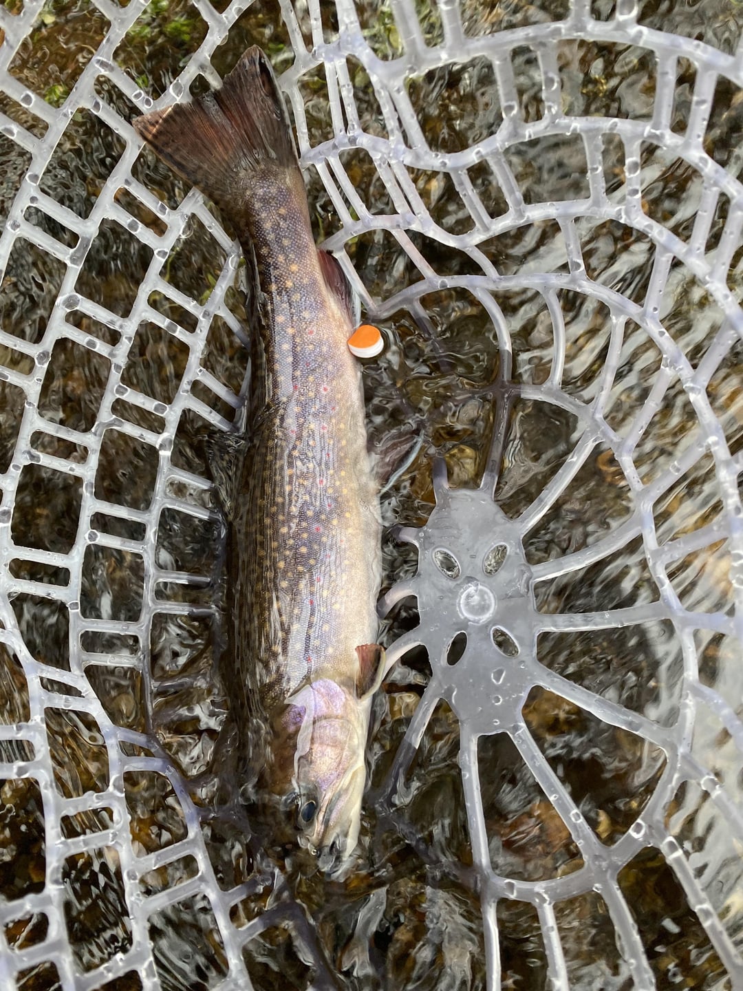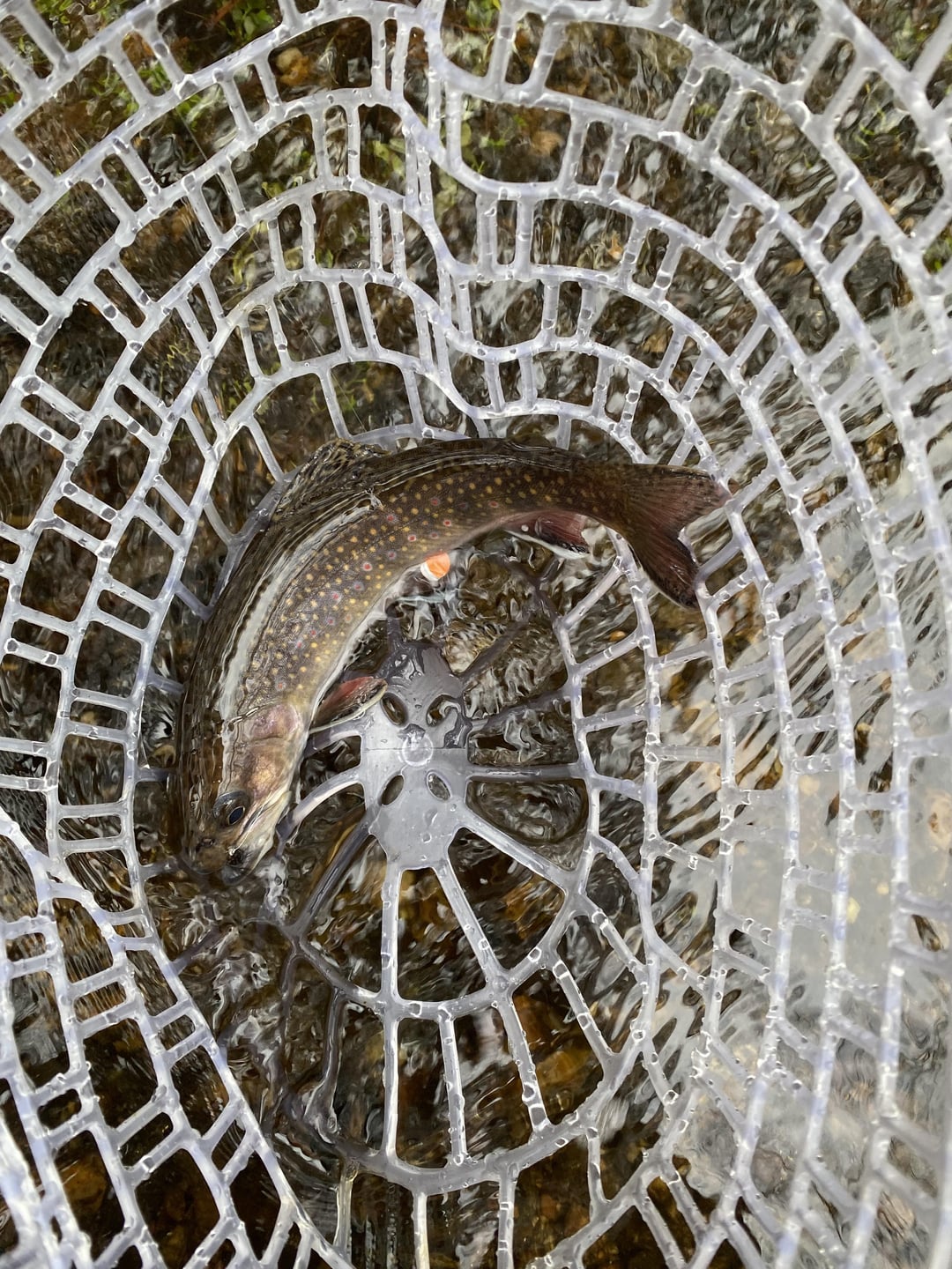 After hours of fishing this week, was able to net this native brook trout. Hard work but finally got it done. Posted by FCandC