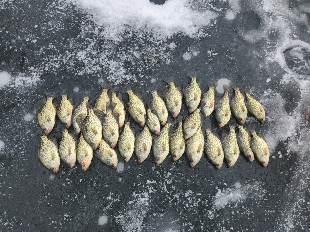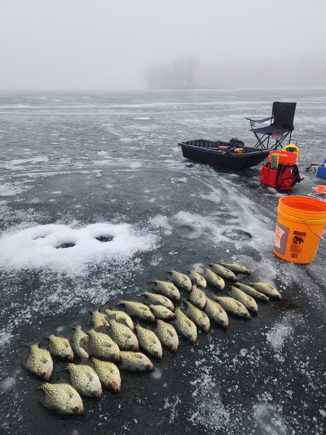 Was able to catch a 3 man limit of crappies all of them 10-13 inches (one small buddy that I gill hooked. Probably caught over a 100 total. Was a great day. Had some pike scare away the crappies for a few mins but didnt mind them đ 36 inch pike was the biggest and a new pb