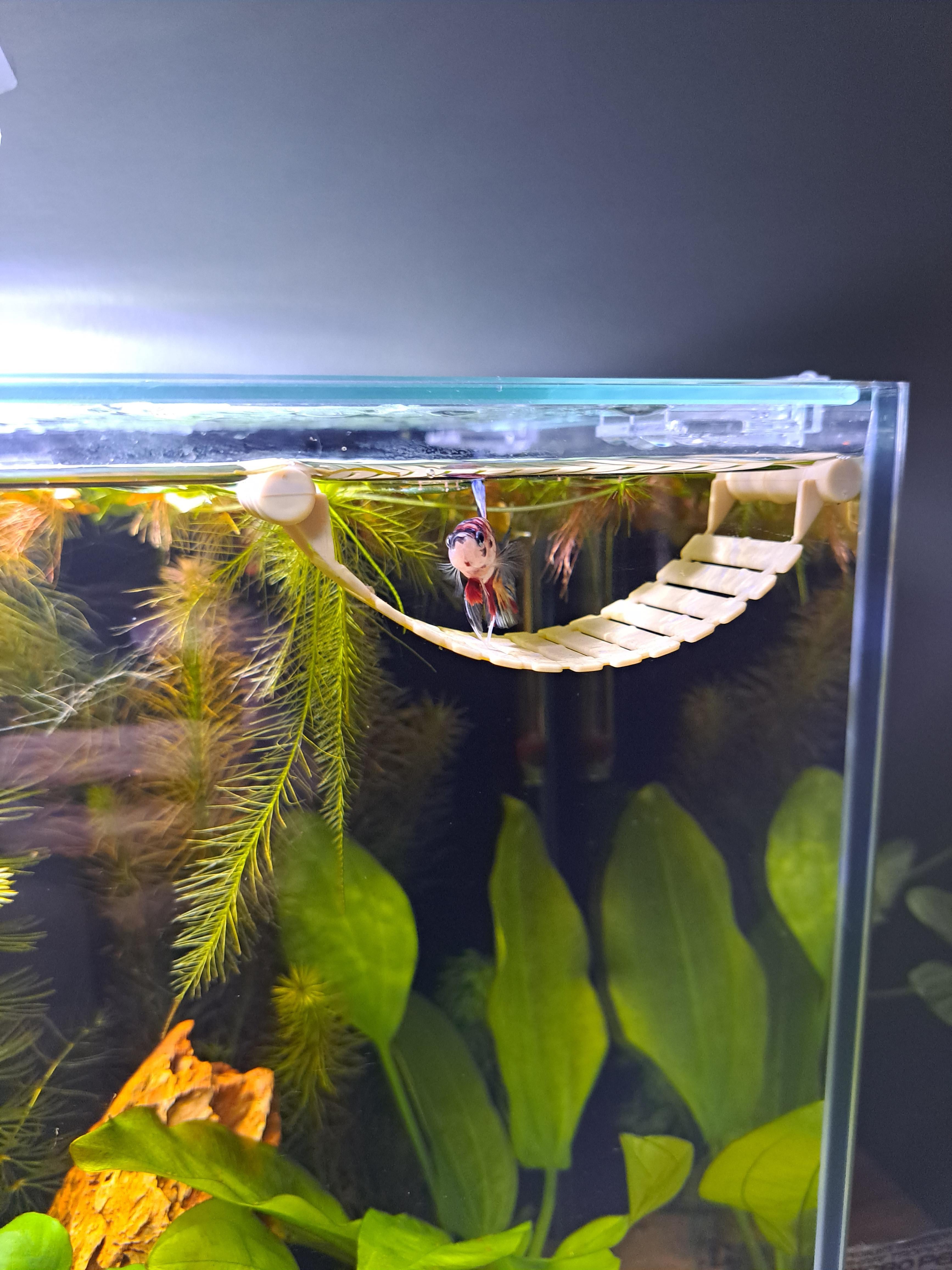 I think I underestimated how cluey these little dudes are! Jesse has already learned to go to his hammock for food, it works well as it 9/10 will capture the food if he misses it first time. Last night I was just watching him in the tank and he went to the hammock, realised he wasn't getting food, and commenced extreme frustration wiggles 🤣