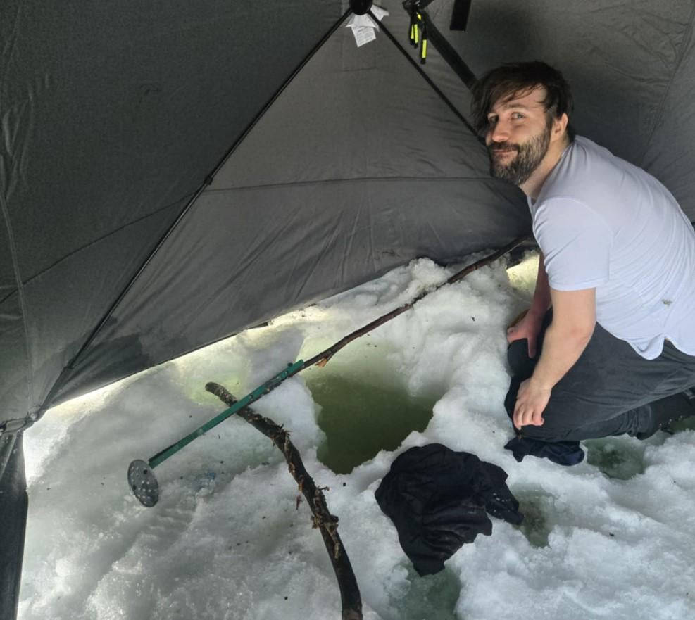 A couple weeks later some guys were fishing out of the same hut and one of them hooks my flask — brings it up and catches a big pike a short while later. They all took a swig out of the flask to celebrate — then returned the flask to the hut operator, who announced the story on their Facebook group & I got my flask back. We are back to enjoying it with its ice water cooled whiskey (that has obviously been topped up a few times).