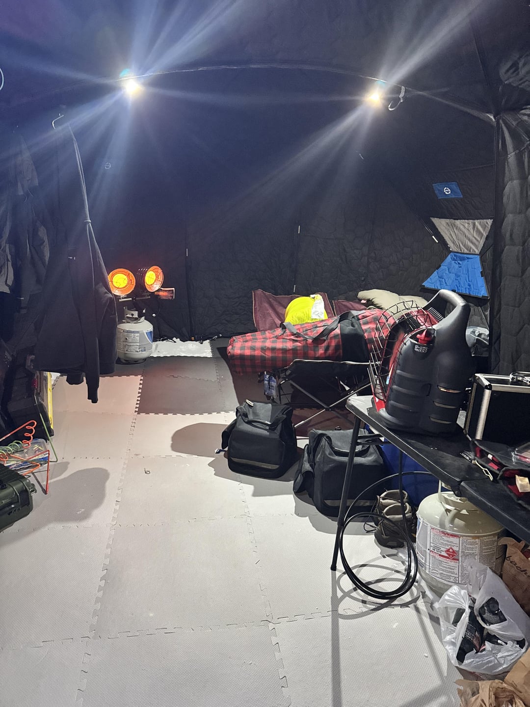 Great weekend camping on the ice with my son and good friend.