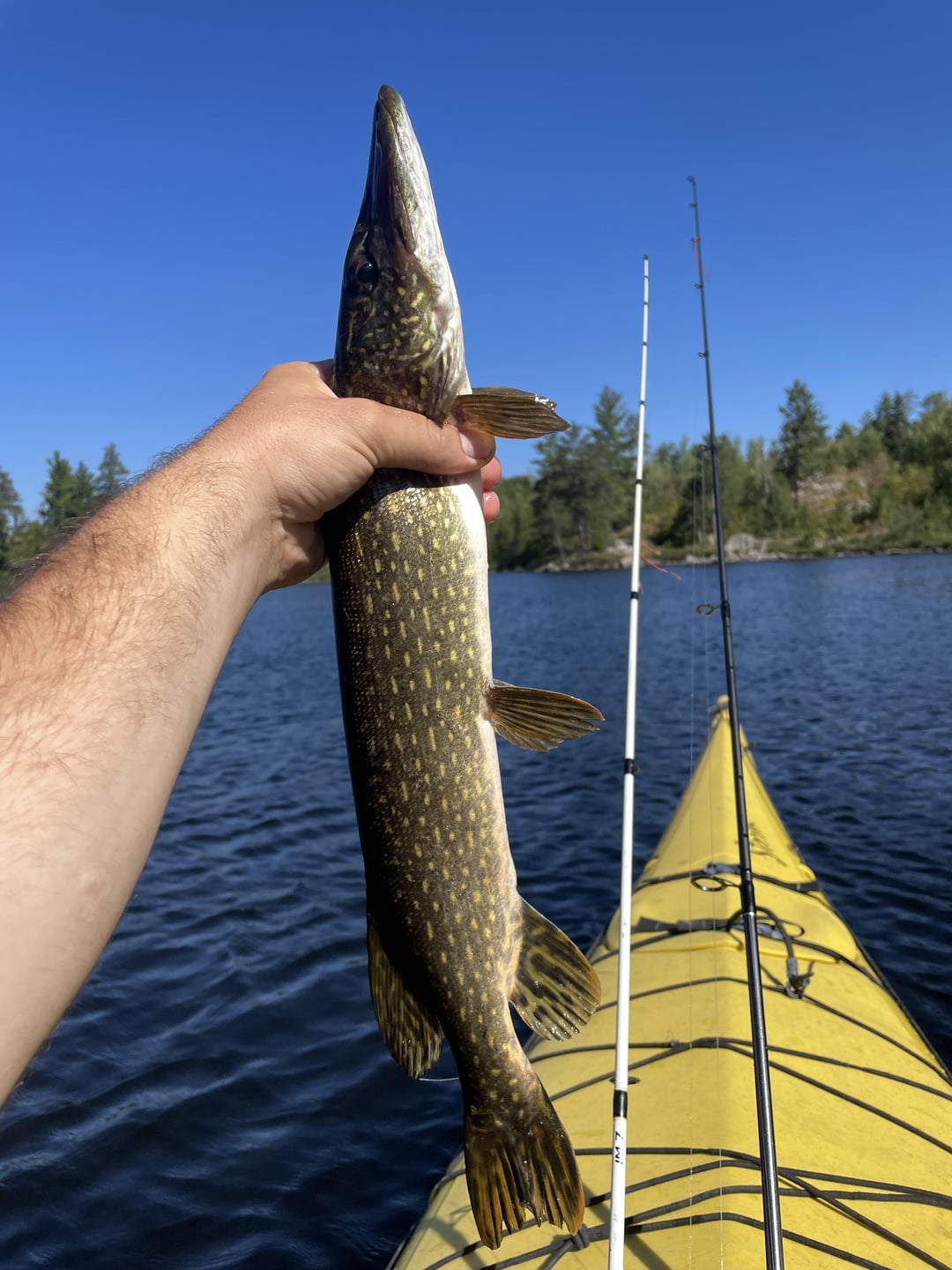 1. These are similar size northern pike i caught in the same state this year. One was from a clear, deep lake in coniferous forest. The other was on a river backwater during the winter.