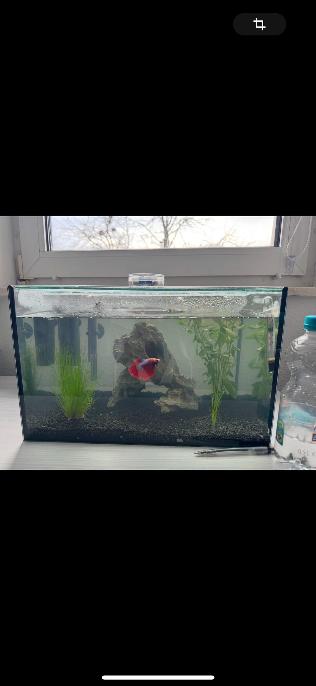 Careful with that rock! I used to brush off the sharp rocks comment but my betta got torn fins. In the first picture you can see the back fin much more than the most recent. Just keep an eye on it