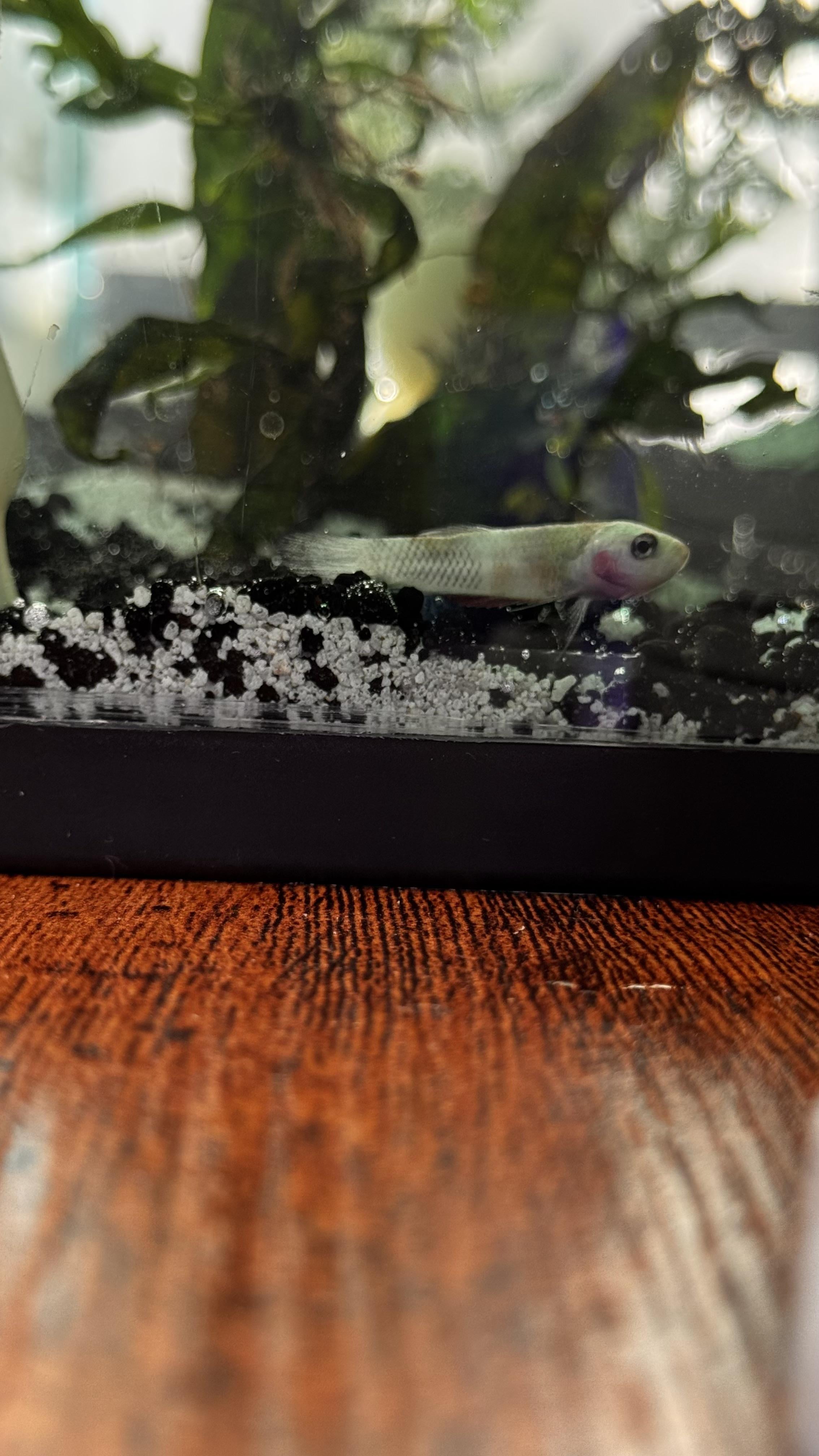 I put her in a tank, added some aquarium salt and she is just chilling at the bottom right now. She swam around a teeny bit when I put her in so that was good to see! I am not sure what to name her. I truly hope she makes it 🌟