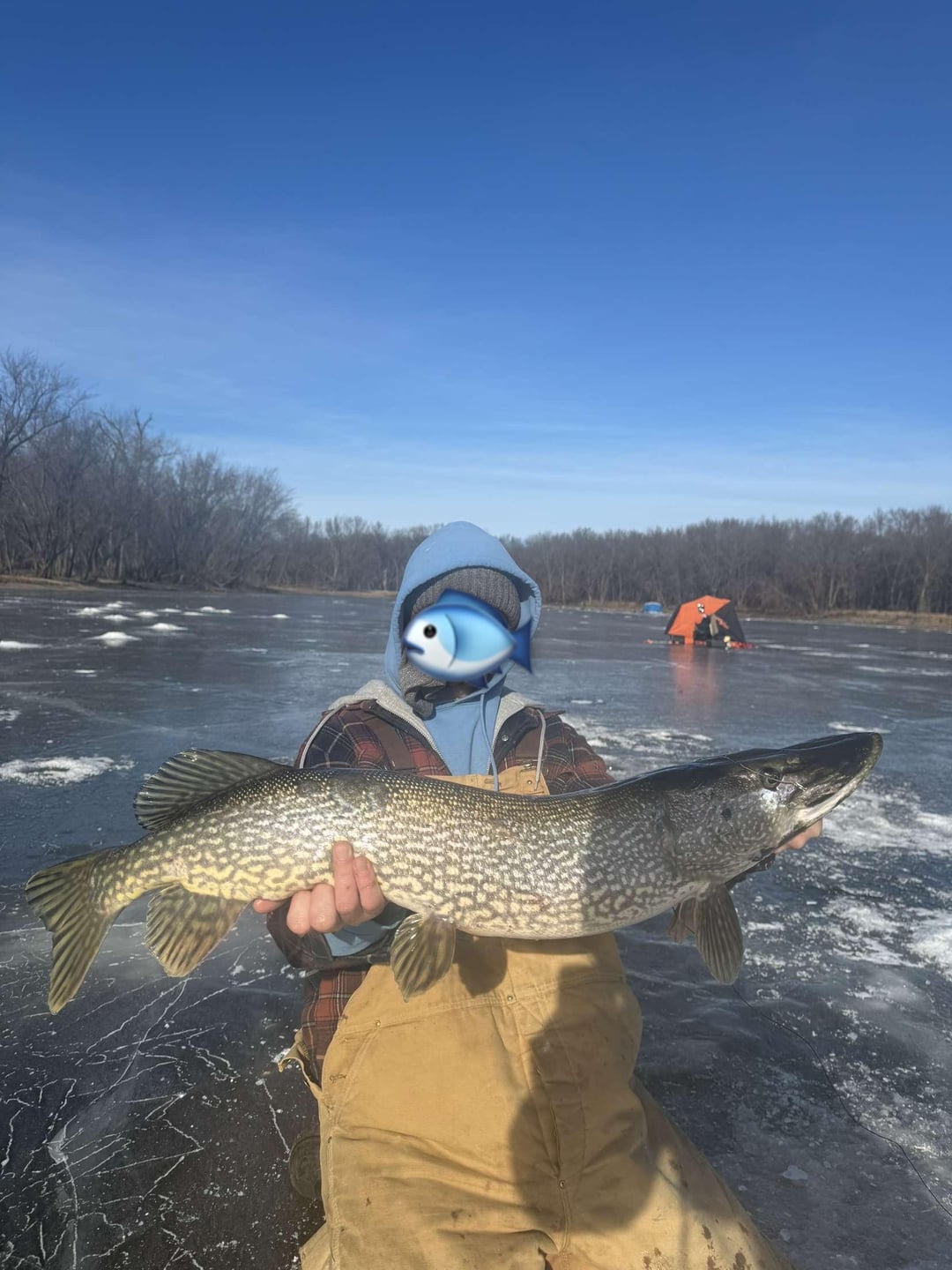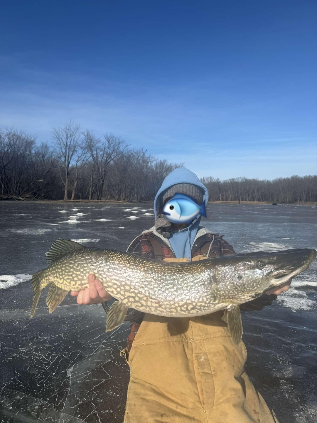 New personal best Northern Pike caught last Sunday. Cold day and ripping winds, got a quick rough measurement of about 38” and got her safely released to fight another day.