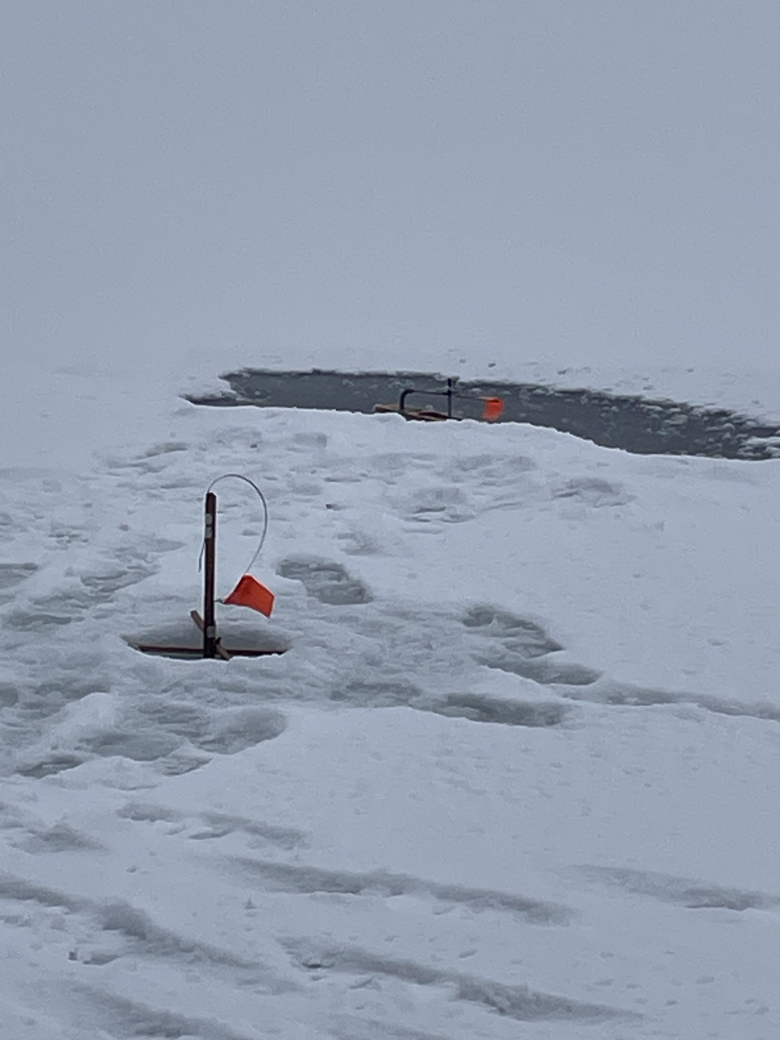 First time on the ice this year and I can only fish 25’ from shore, still has a lot of open water. I’ll try a smaller lake tomorrow, wish me luck! Posted by DrZeus104