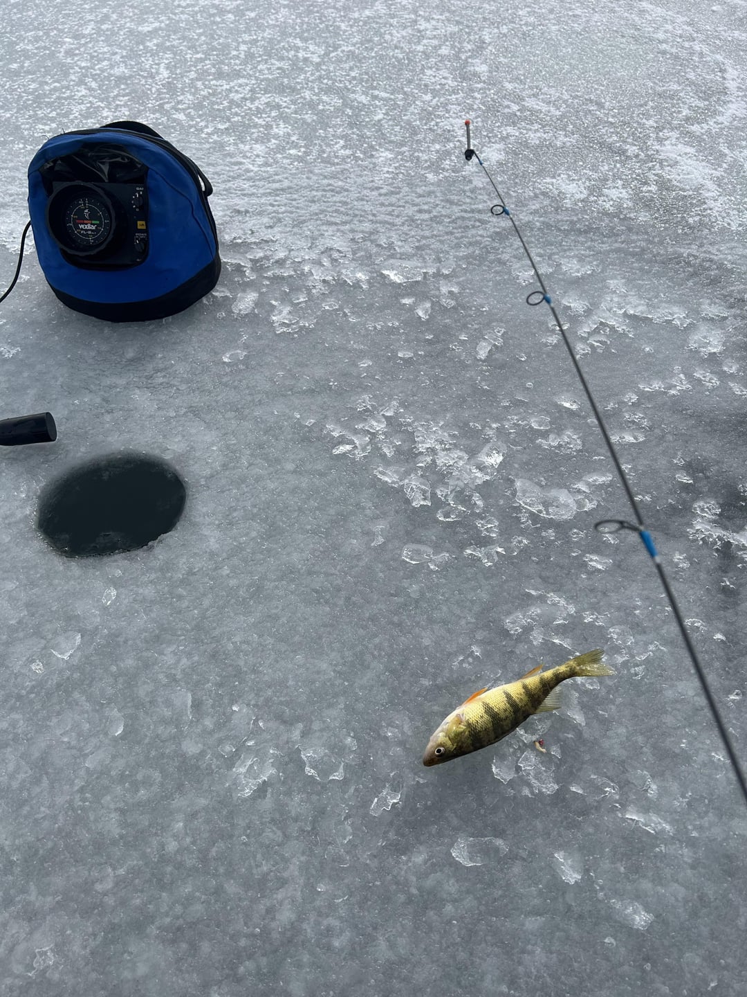 Wasn’t much action, the ice was super sketchy, (3” and cloudy with soft spots periodically) but I didn’t get skunked and it felt great to get out on the ice again Posted by OHBHNTR95