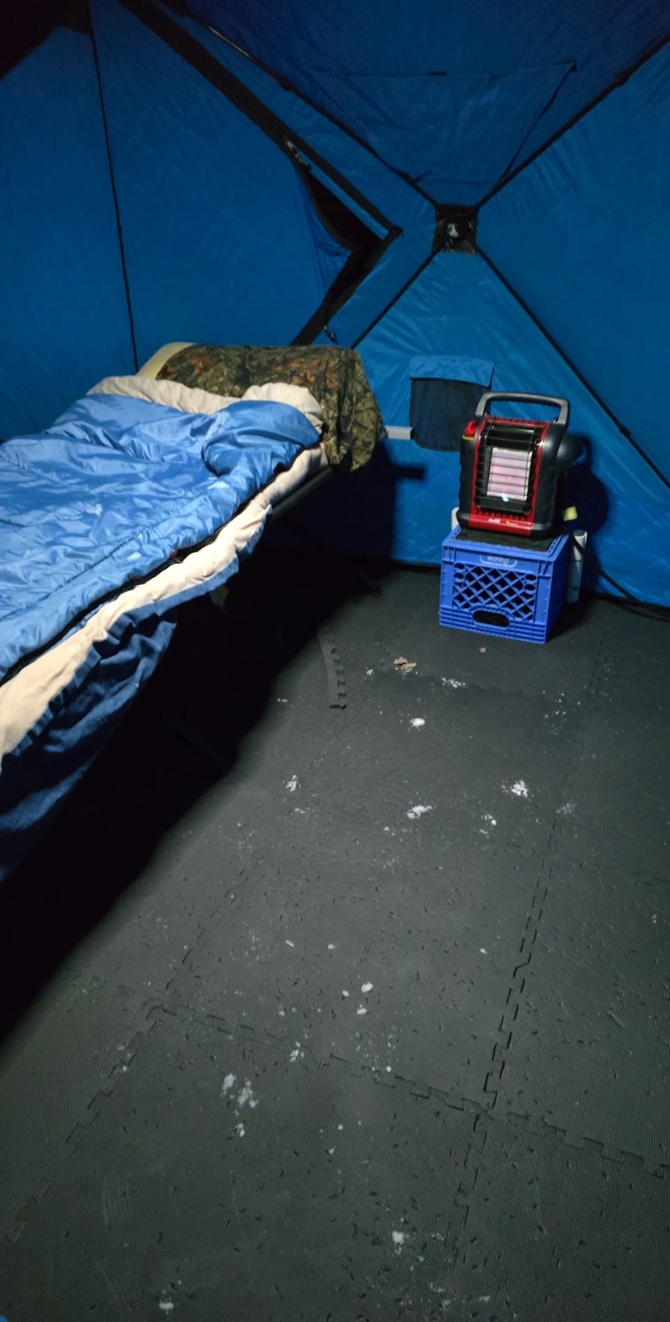 That looks comfy. How was it with the Buddy Heater? Did you have it on while you slept? I have yhe same one and am looking forward to doing this when I move North in a month. Like a kid at Christmas. Lol