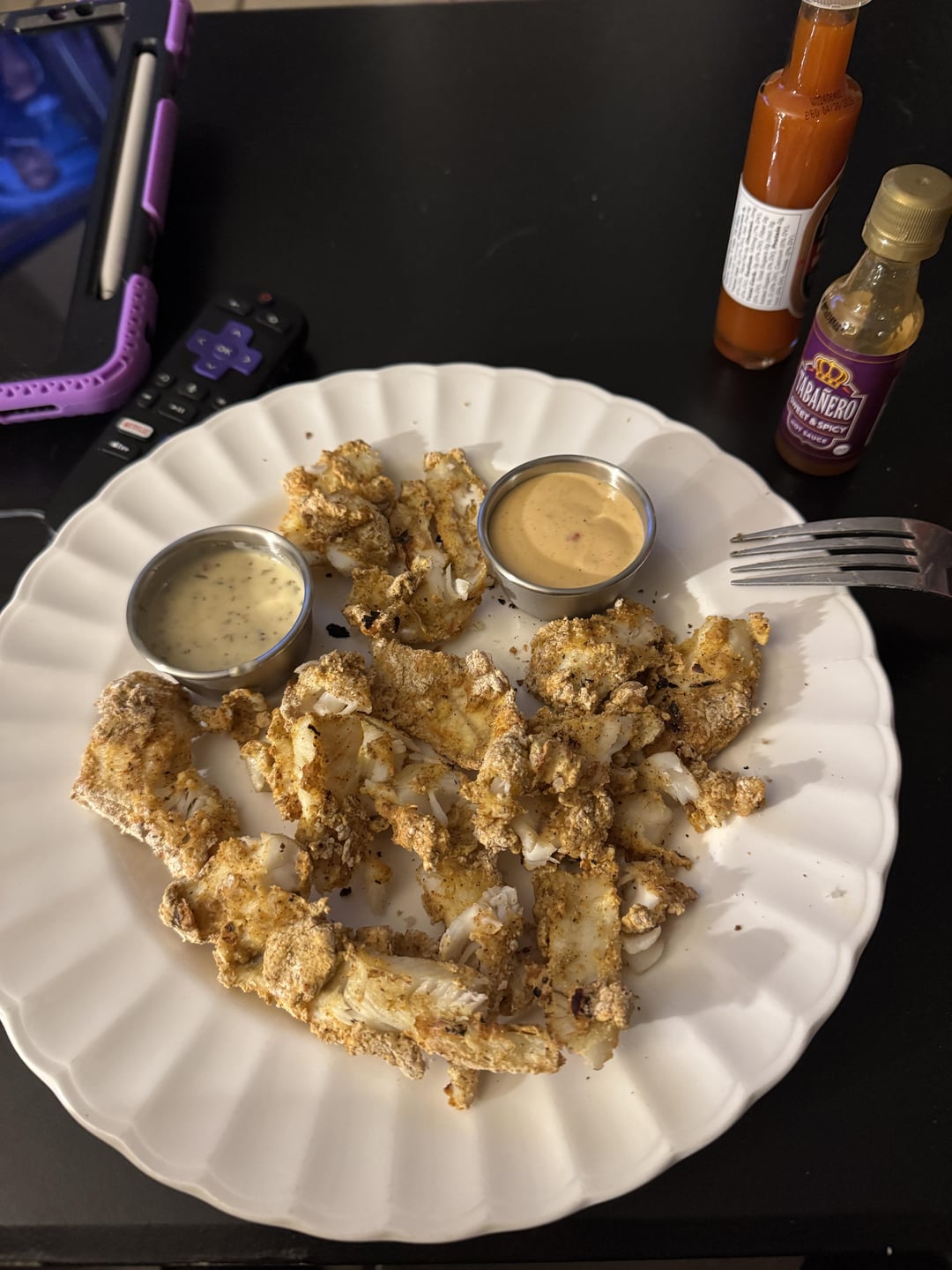 1. Great catch, but you lost me at the raw flour on the partially “air” fried fish, bud.