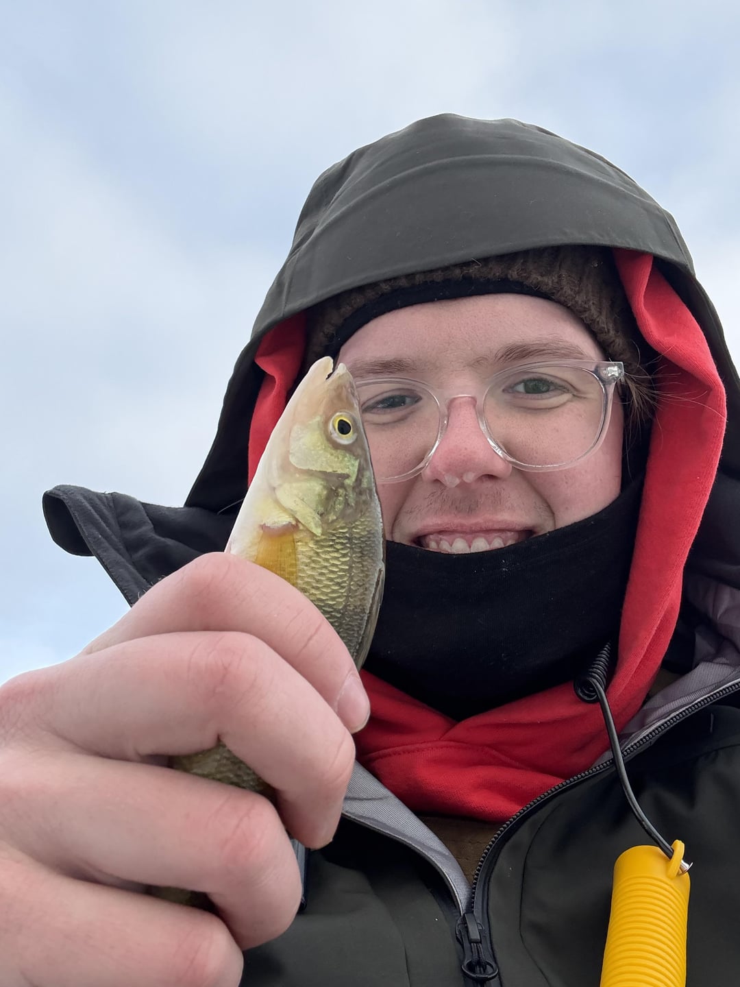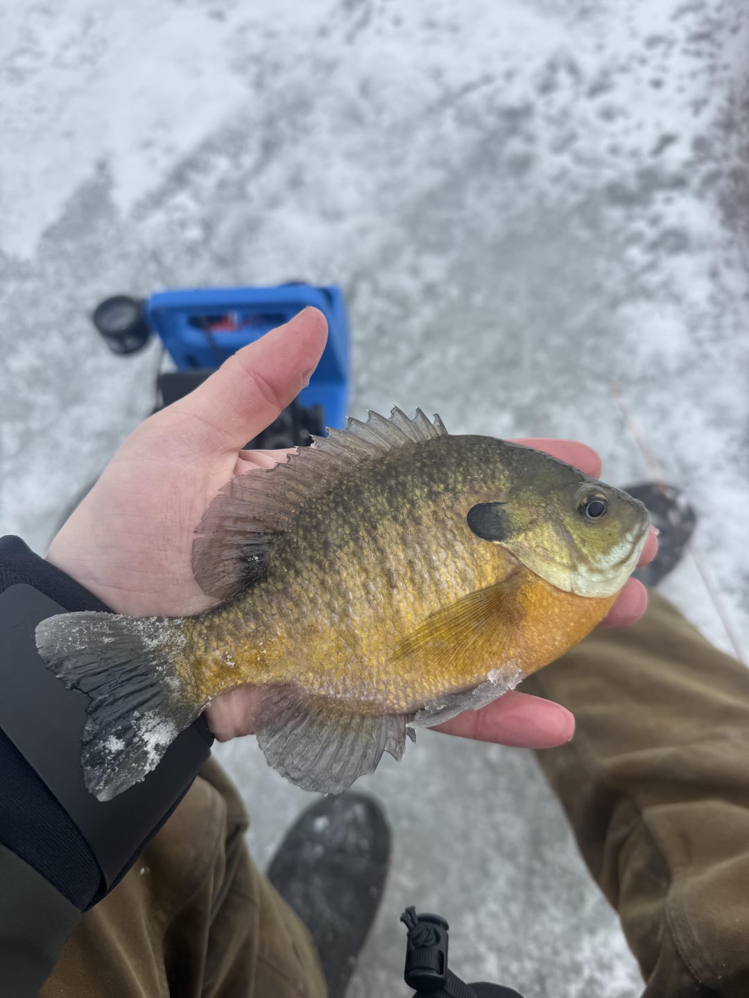 Was able to get on the ice for the first time ever and got a few small Perch and a nice bluegill Posted by Goaliewha