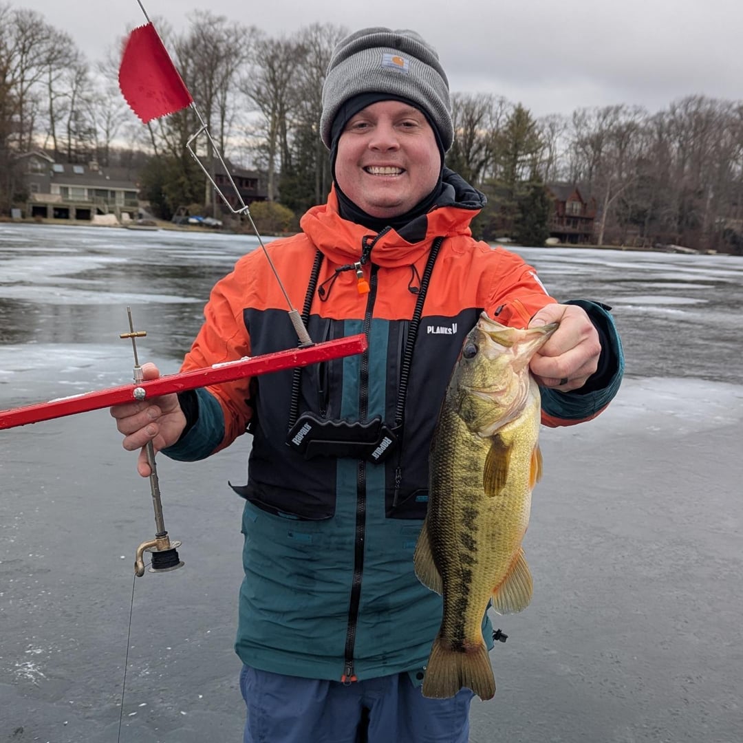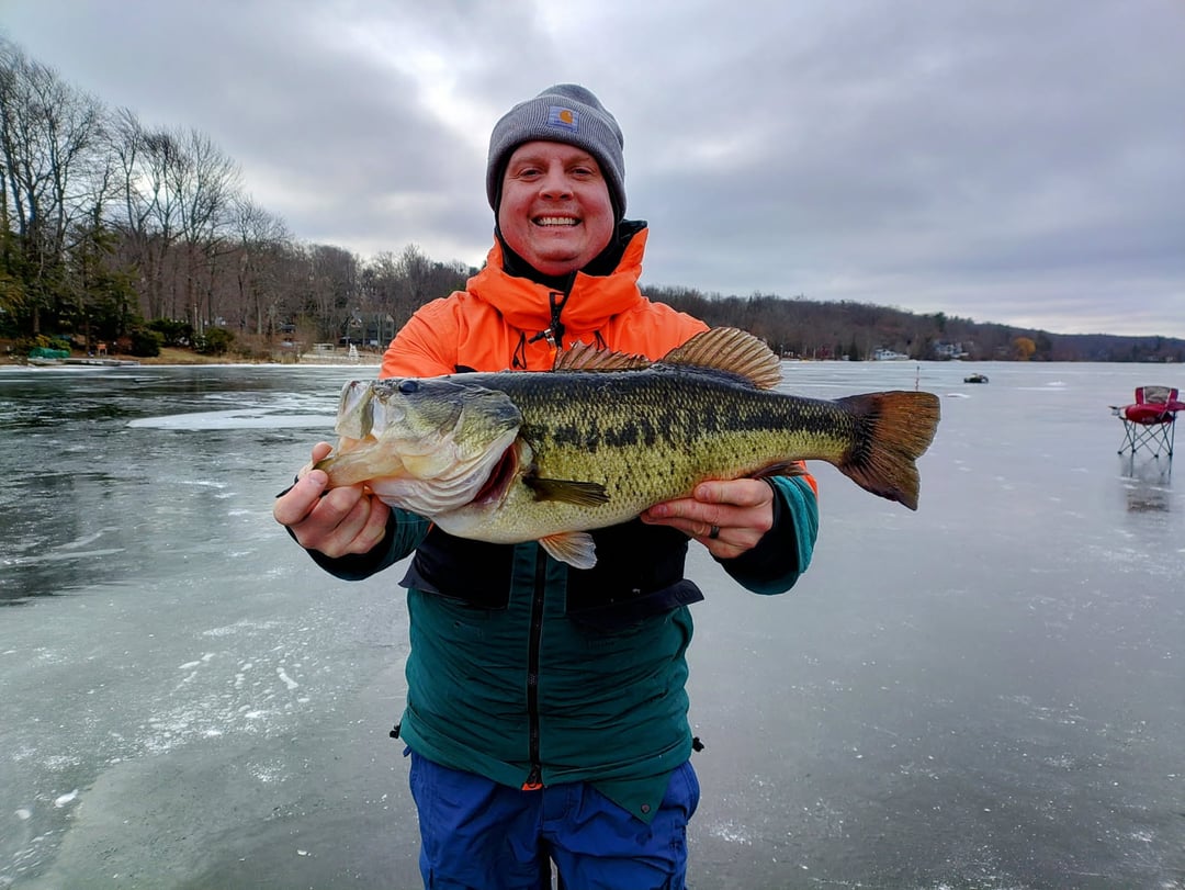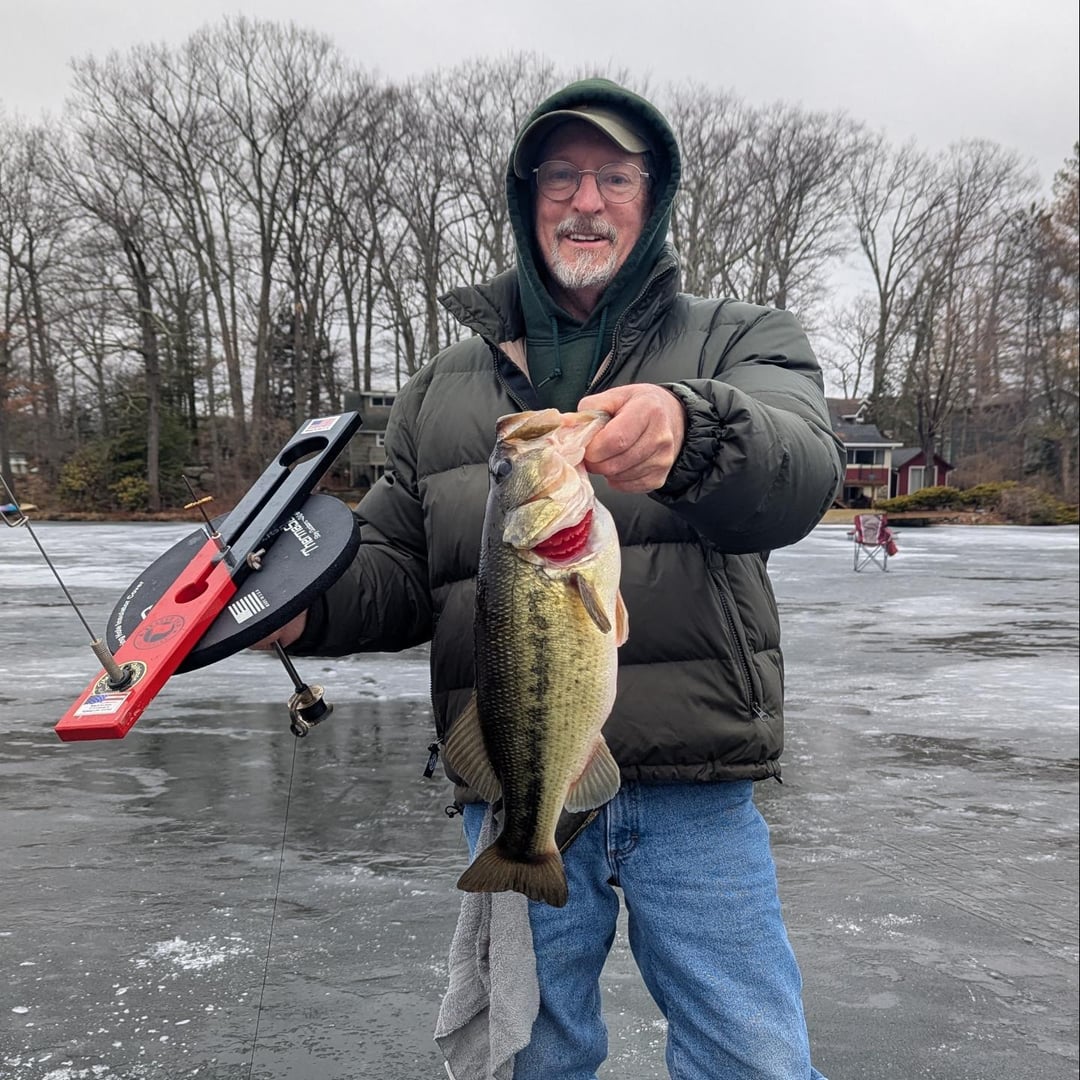 To me there is nothing better than ice fishing on the lake you grew up on with family and friends. Landed my PB large mouth today through the ice. It weighed in at over 5 and a half pounds! All and all we landed over 20 large mouth with most of them tipping the scale above 2.5 pounds. Over 40 fish were caught on the day between the large mouth and perch we all landed. Not bad for a few New Jersey fisherman.