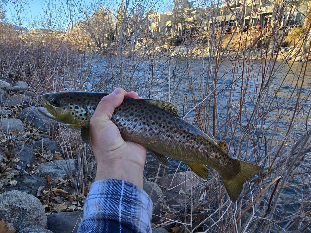 After getting back into fly fishing this year for the first time in over a decade, ive hit the Truckee well over 30 times all the way from Tahoe to Pyramid. Its been a struggle, ive been skunked every time and have only had 2 on the line but failed to get them in. Until today, I finally caught a nice 16" brown on a hand-tied size 18 spanish bullet.