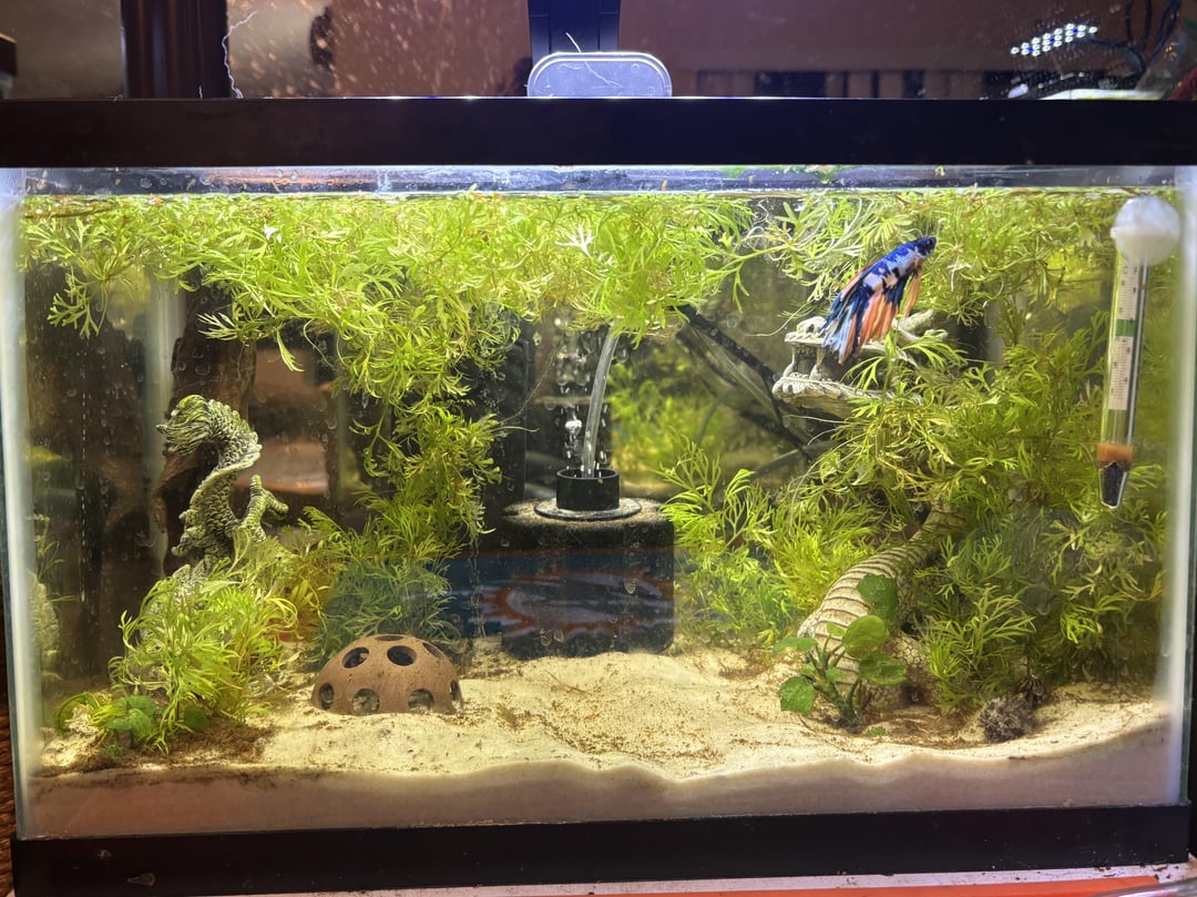 Also sorry if his tank looks a bit bare. I’ve been meaning to add another decoration/center piece, something more for him to hide in, but want to help him get better before I change his environment and stress him out more.