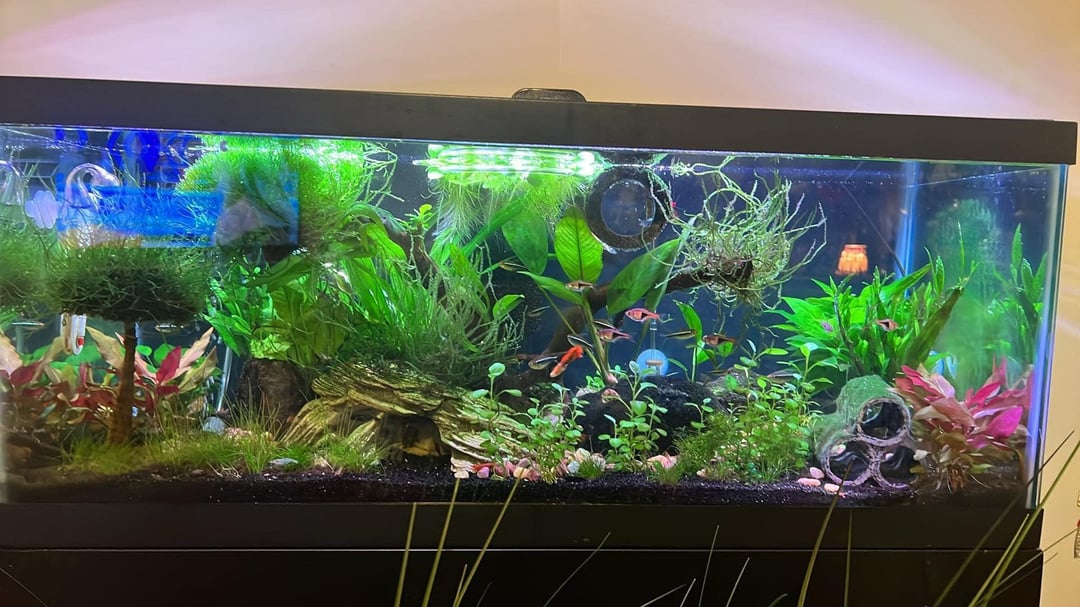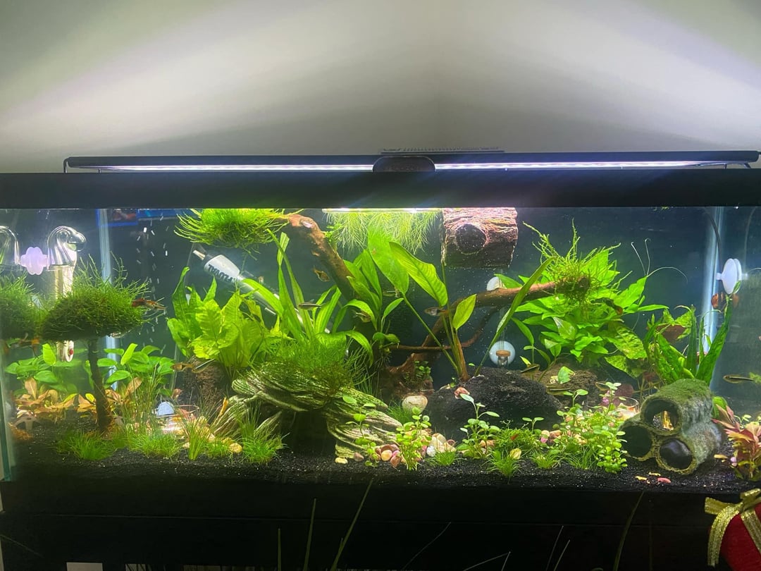 The red flowers have done really good and flourishing. The Java fern has sprouted and the moss has grown like crazy to the point it needs to be trimmed I think in order to allow more swimming room. The dwarf Hairgrass hasn’t even changed tbh so disappointed on that but oh well… Any thoughts?