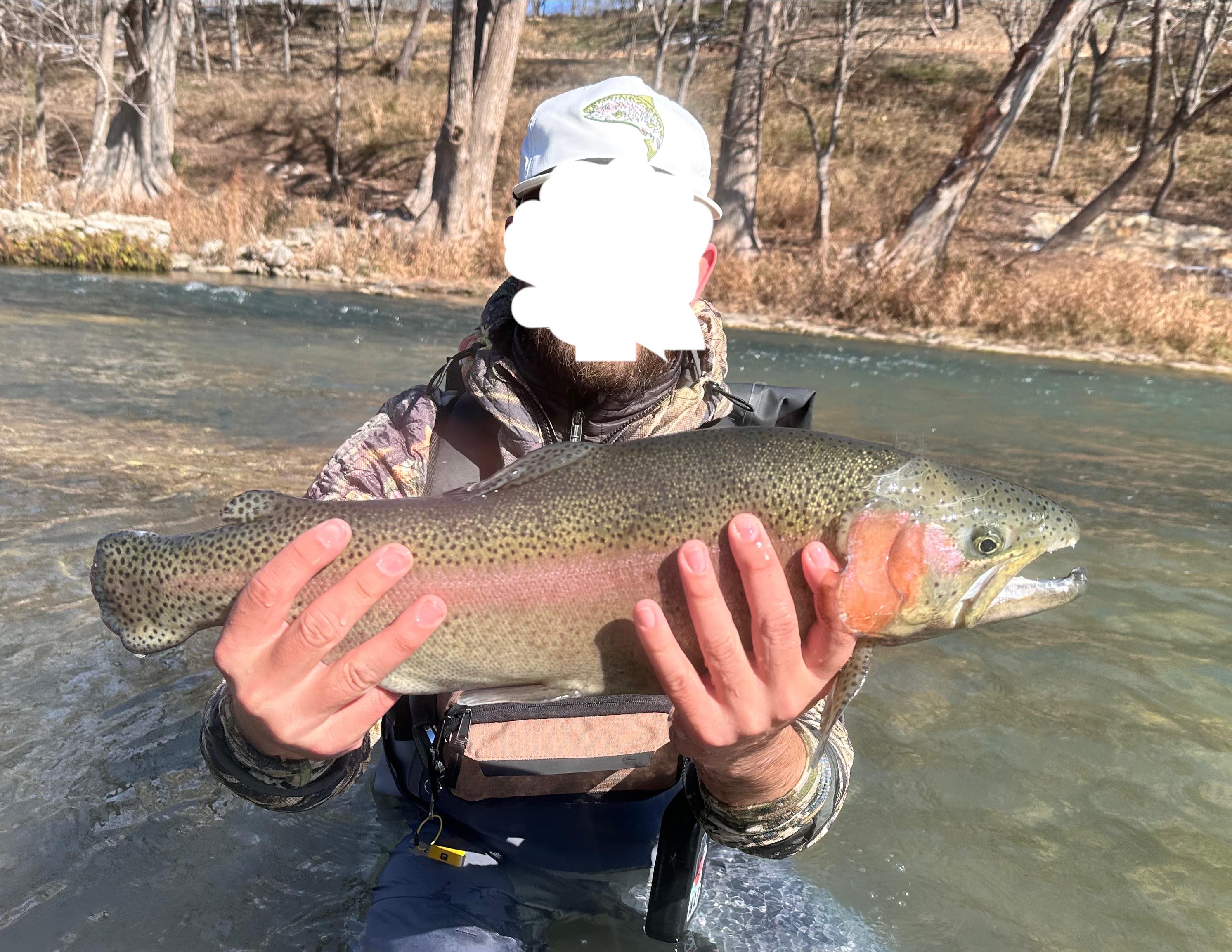 A pretty famous holdover rainbow trout on the Guadalupe River in Texas. The local guides call him “lieutenant Dan” Posted by Flat_Grapefruit_8630