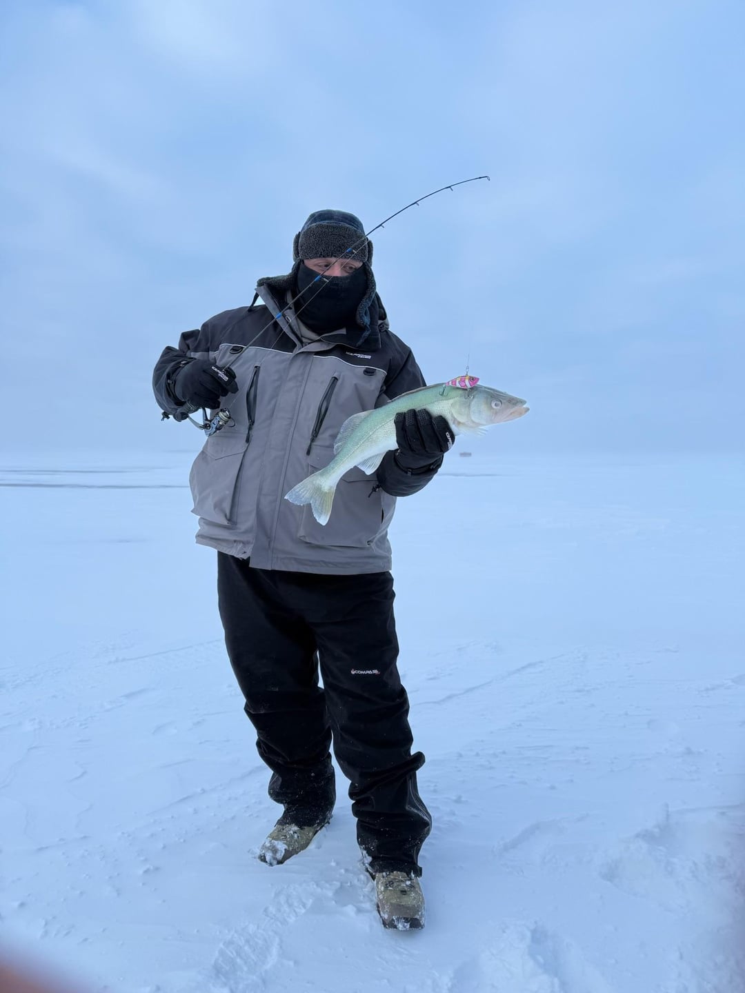 My group ended up with one 27” (measured) and four fish just under that, including the one I’m holding. I didn’t measure this one but I’d guess it was 24-25”