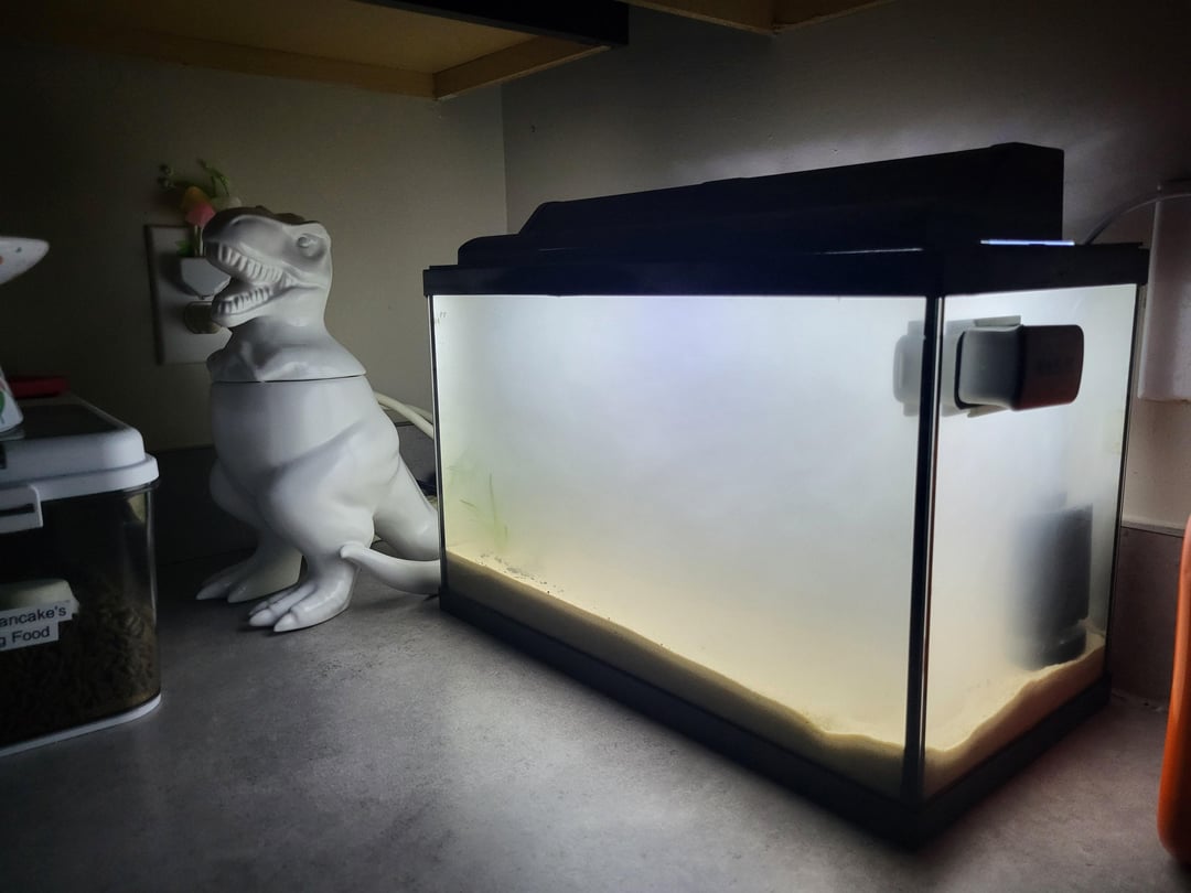 I blacked out and came to briefly while washing sand. Darkness consumed me once again. Once I regained to consciousness, I was greeted by picture number three. A fresh tank. I think something about having an air pump with two ports and only one in use, combined with the fall and other ingredients just sitting around caused this.