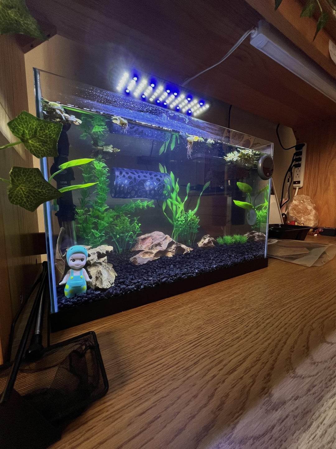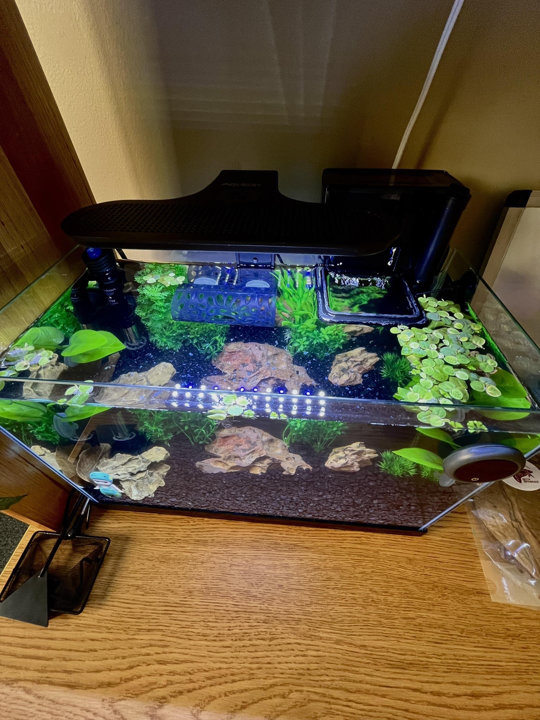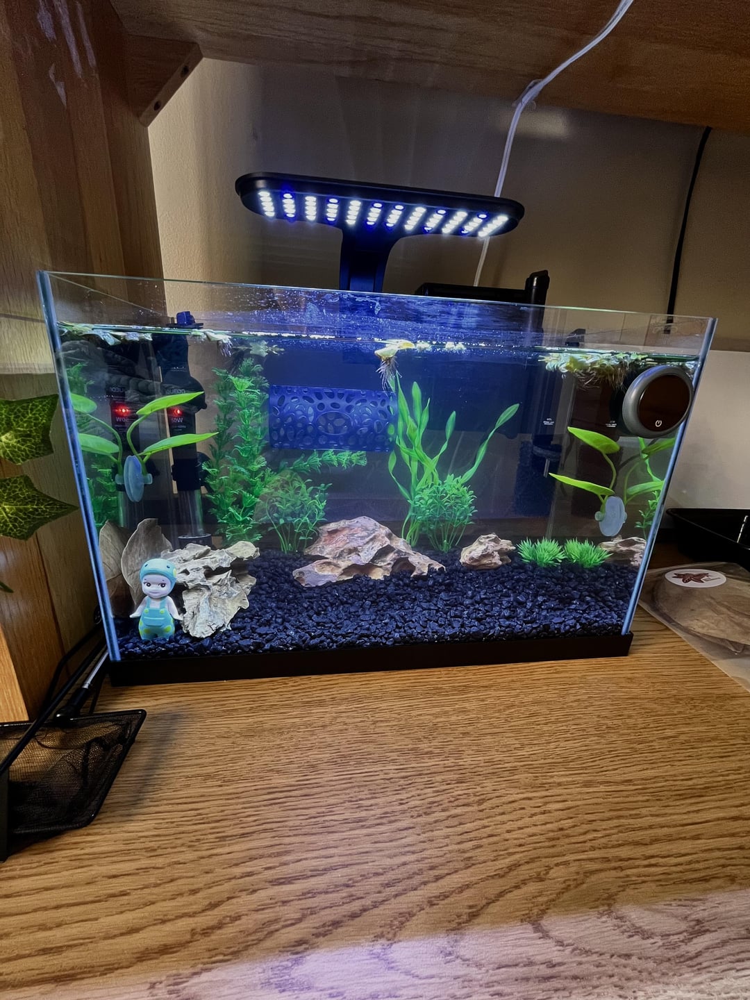 I am pretty new to the hobby, and this is my 5.5g tank that is currently being cycled (week 2)! I know I’ll probably get flamed for having silk plants instead of live ones, but I promise they are smooth, soft, and won’t rip any fins!