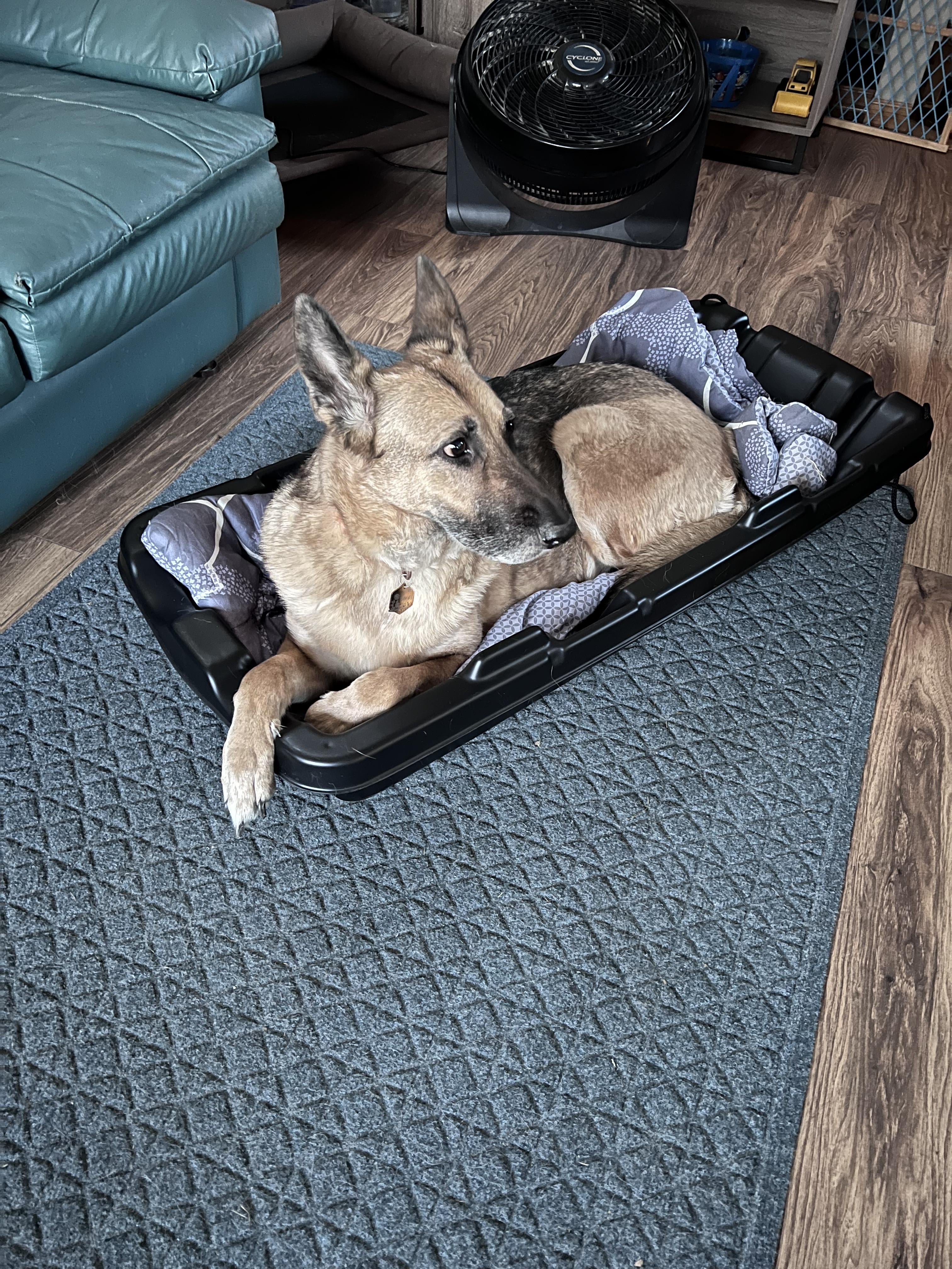 Im working on making my dog as comfortable as possible on the ice. I started out with a couple of mats on the ice but she would inevitably get wet and cold. Next I moved the mats into my Trek 60 but have to move most of my gear out of the sled to accommodate her. Works relatively well but securing all of my gear from the wind is a major pain and setting/packing up takes way longer. Also, way too big in the shack. Now I’ve gotten her own Trek 45. I’ve got a rubber mat along the bottom to keep her suspended off the ice and a comforter for padding. I’m looking for ideas to replace the comforter because it gets wets as she gets in and out during the day and is a pain to dry each day. Also interested to see other’s setups or any ideas to improve.