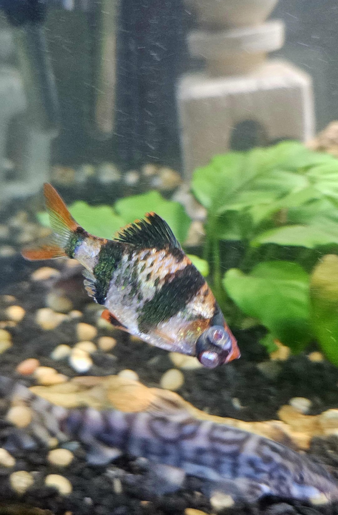 So this guy is about 4 years old. Last month his eye swelled up and I assumed it was a case of Pop Eye. I figured his fellow barbs were bullying him so I separated him for a week so he could heal, but it did not get better. I ended up putting him back in the main tank because being away from the school seemed to stress him more.