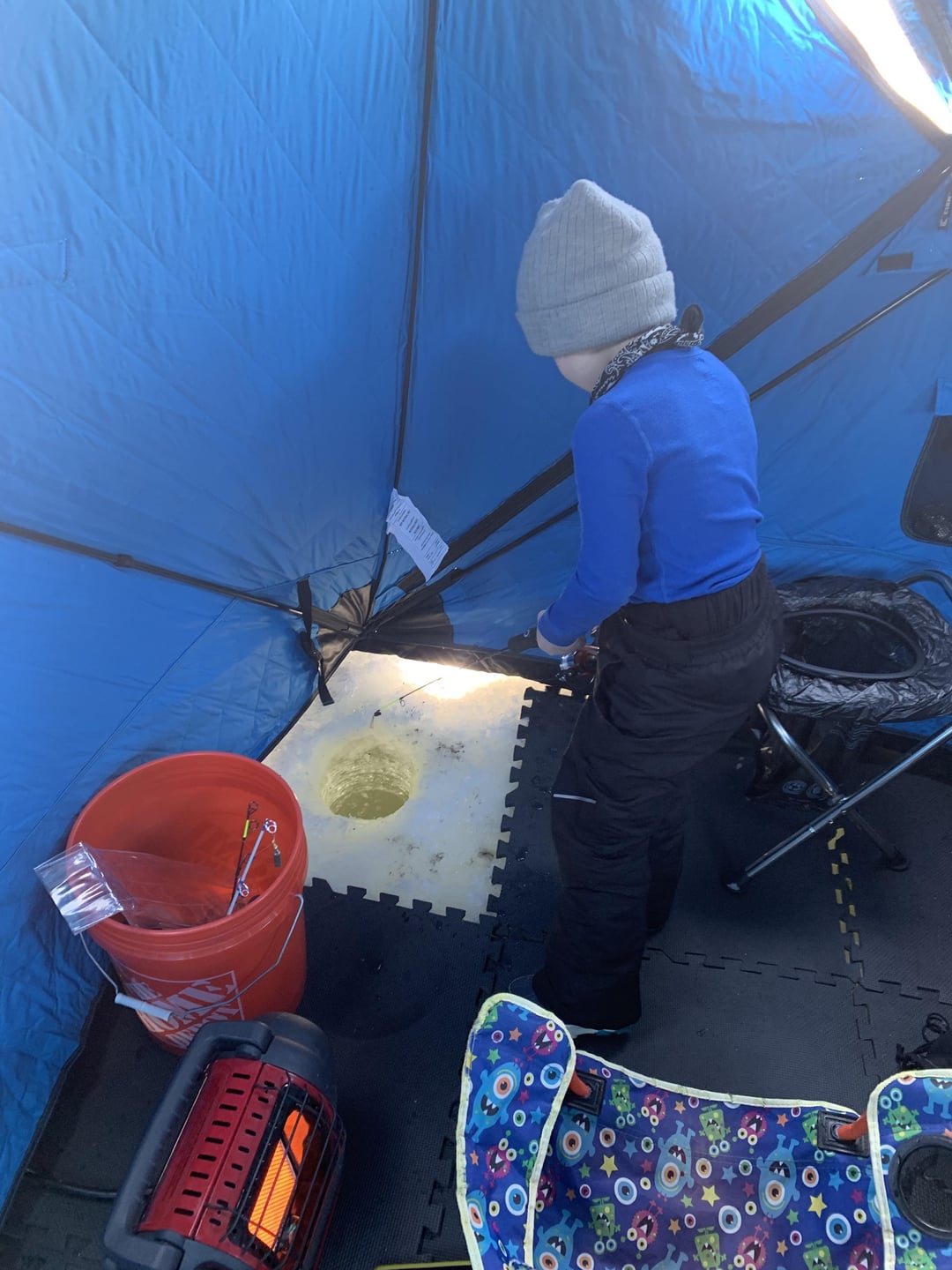 Took the boy out for an all day fishing trip. He’s 4 years old and autistic so wasn’t expecting the trip to last long, but he loved it. Fishing was slow but the venison back-straps cooked on the ice was great. First of many trips this season.